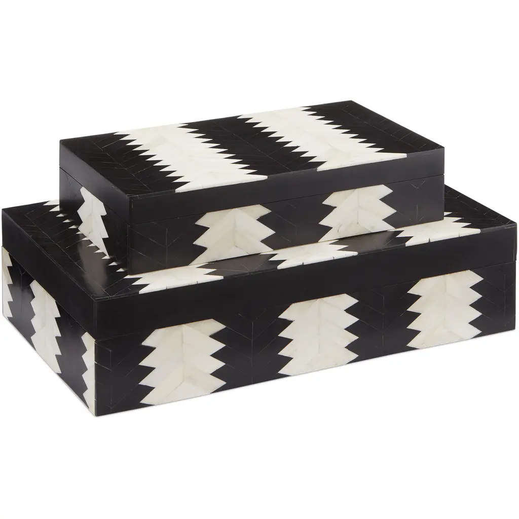 The Arrow Box Set, designed by Jamie Beckwith, is based on a strong graphic shape that comes alive with the contrast of bone and composite in ivory and black along the surface. Originally created in bold patterns for vertical and horizontal surfaces, Beckwith says of the Arrow, This is a unique take on a chevron pattern. I was inspired by original French chevron parquets and this pattern is an updated version of that. There is a classic feel to this graphic shape with a modern take. It provides a strong underlying structure that bonds all the elements of a room together. There are a number of offerings in this family of products.