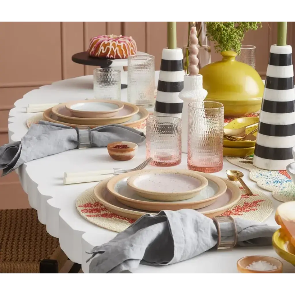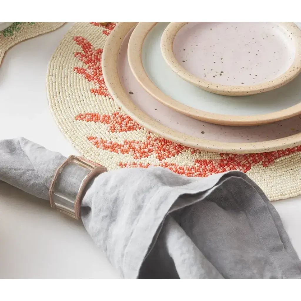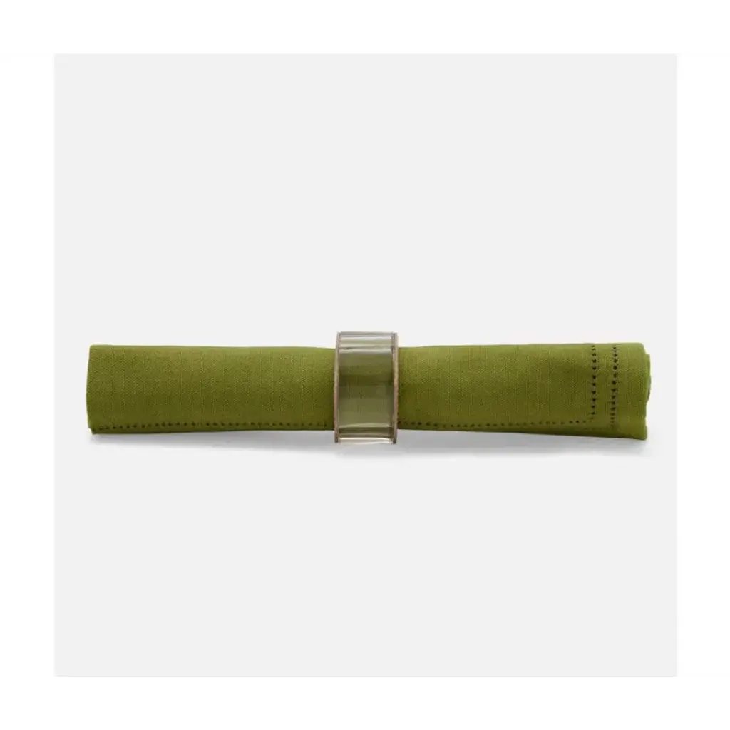 Box set of four glass crystal napkin rings with full-grain leather detail. Now available in Dark Gray and Dusty Rose! Blue Pheasant's products are handmade with care by artisans using natural materials. They are not mass produced, so variation between products should be expected, and this is why we love them! It is these irregularities that makes Blue Pheasant what it is—a special brand whose collections are distinctly handmade, full of charm and originality you’ll never find in machine-made products.
