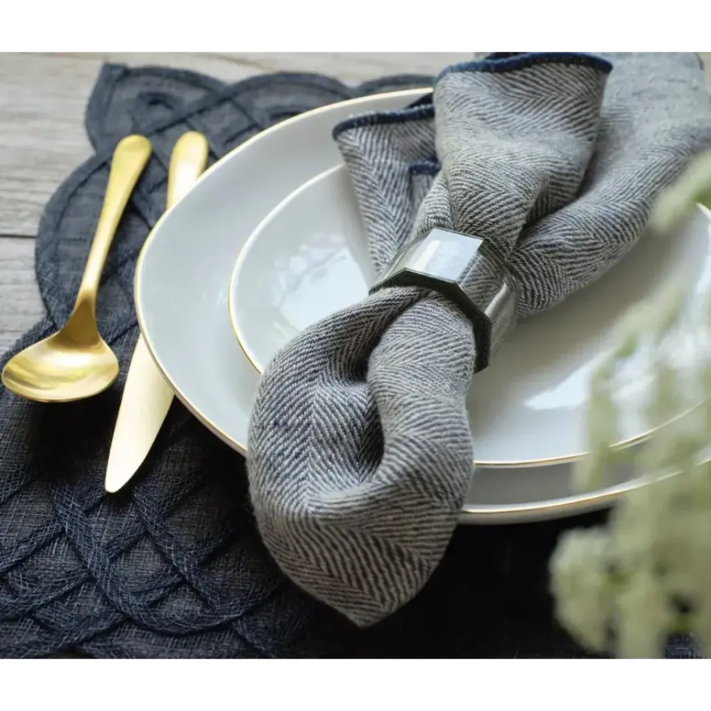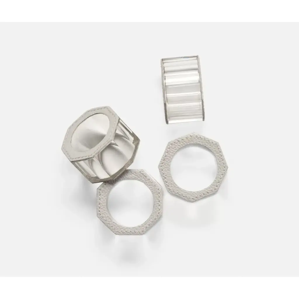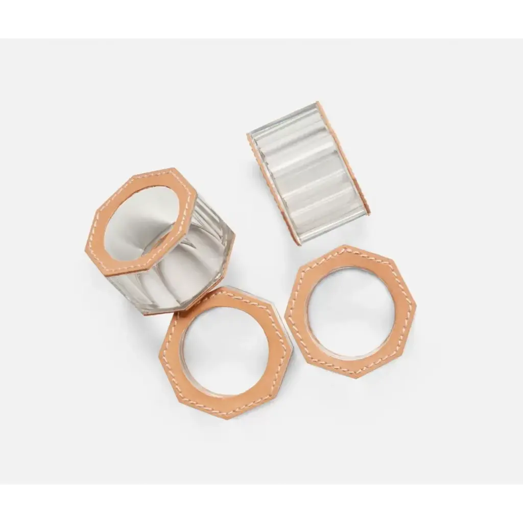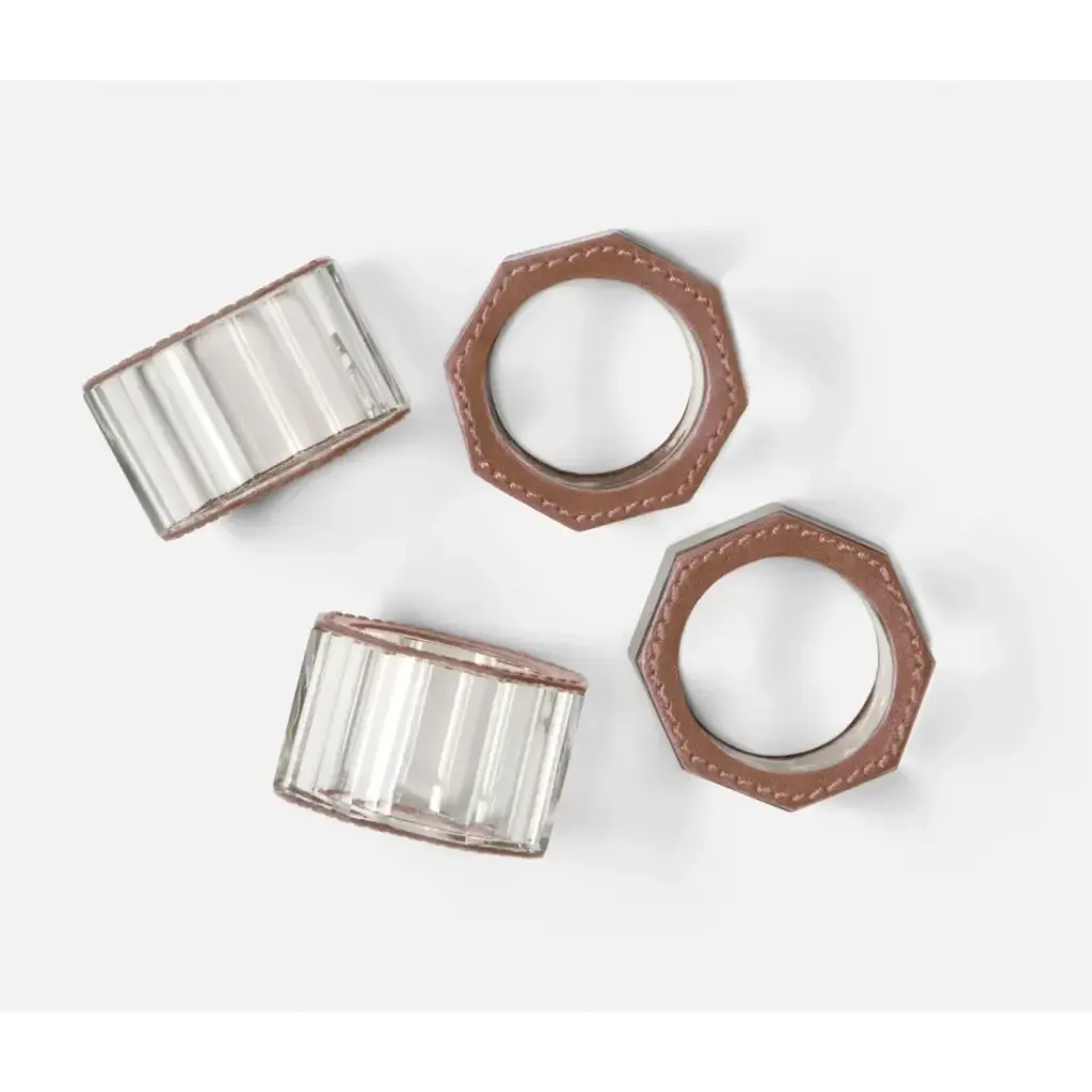 Box set of four glass crystal napkin rings with full-grain leather detail. Blue Pheasant's products are handmade with care by artisans using natural materials. They are not mass produced, so variation between products should be expected, and this is why we love them! It is these irregularities that makes Blue Pheasant what it is—a special brand whose collections are distinctly handmade, full of charm and originality you’ll never find in machine-made products.