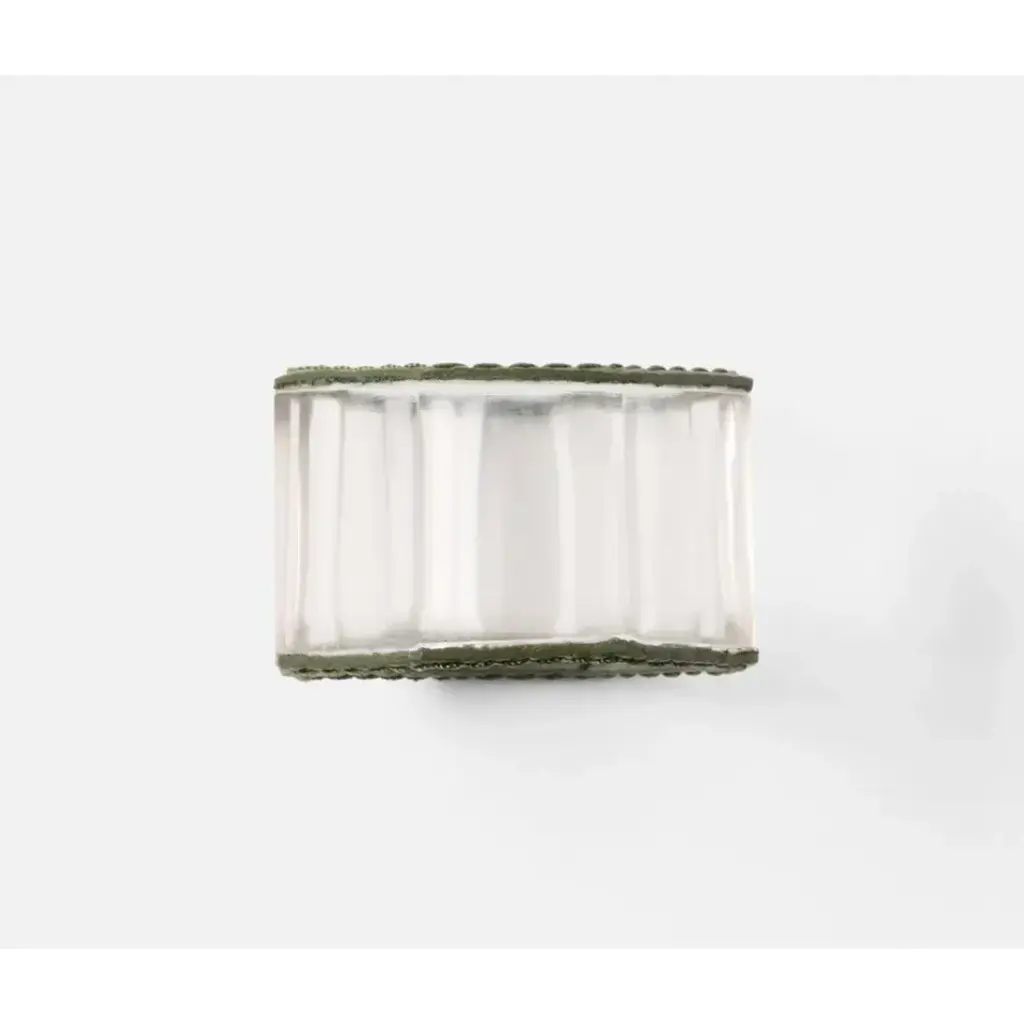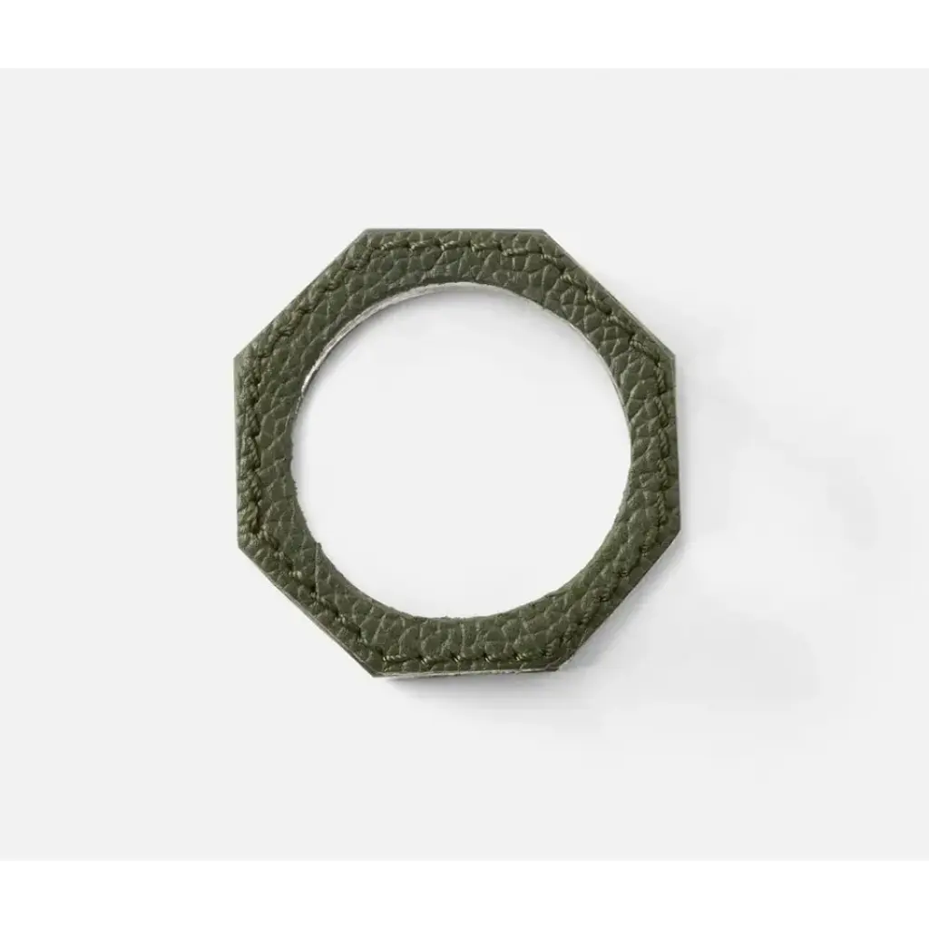 Arthur Forest Green, Napkin Ring, Full-Grain Leather/clear Glass Crystal, Boxed Set Of 4