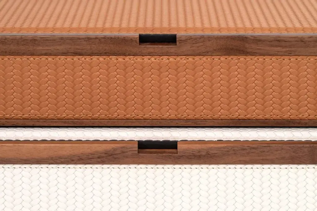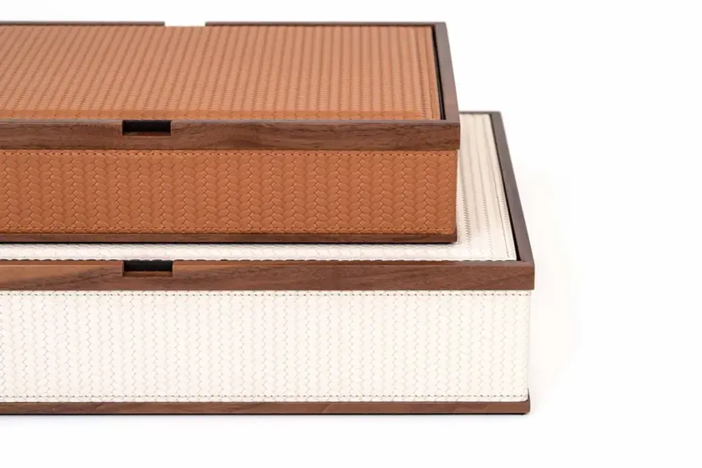 Astrea is a storage boxe with a wooden structure available in oak or walnut version. Sleek and contemporary lines to turn vintage references into modern elegance. A family of four different sizes, tow square and two rectangular for an incomparable level of detail to make a flawless desk.