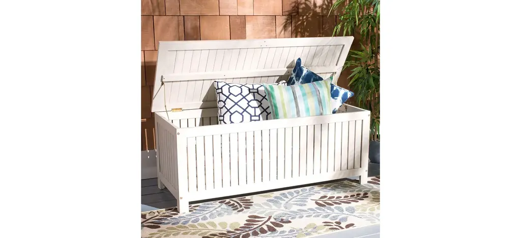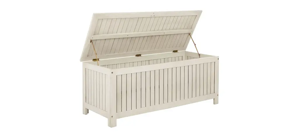 The August classic cushion box brings charm and grace to any outdoor living space. Designed for ample storage, its clean white finish and eucalyptus wood craftsmanship ensure it will be enjoyed for generations.
