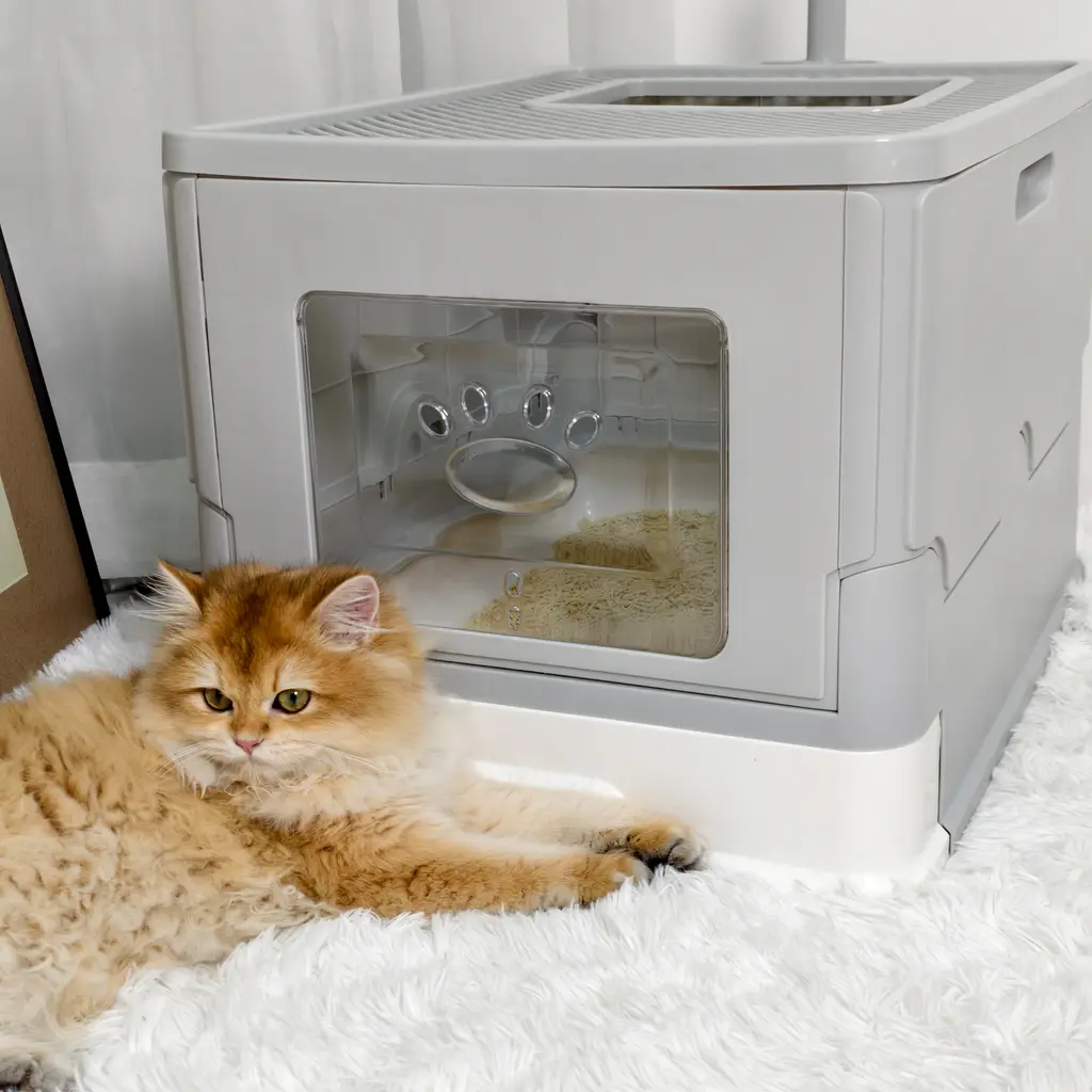 Why Choose Us?Our design concept is attuned to the owner's management and observation of the cat's daily life, for which it has been optimized and fully upgraded.Our smart litter box not only frees up the owner's hands, but also provides a more comfortable and spacious toilet environment for cats! You deserve it!Provide Bright Lights in the Dark NightThere are 6 sets of lights in the bucket compartment, hoping that the owner can also observe the cat's toilet situation in the dark; at the same time, the lights are also thoughtfully designed with the function of adjustable brightness, so as to adjust the preferred light color and brightness according to the needs of each person.Capacity UpgradesOffers a 76-liter drum capacity and a 13-liter waste collection bin capacity, providing a spacious interior for cats weighing from 3 lbs. to 21 lbs. The large waste collection bin allows one cat to enjoy up to 15 days of free poop scooping. Super comfortable and convenient.App ControlConnect to the network (2.4GHz Wi-Fi only). All functions can be operated via the unit's touch panel or app control. Use the app for remote control to monitor information such as how often the litter box is being used, your cat's weight, and the toileting market.Multiple sets of high-precision sensorsMultiple sets of high-precision sensors provide excellent assistance in capturing data on the cat's toilet situation, as well as protecting the cat's safety, so the owner can rest assured that the cat can use the litter box with peace of mind!Adding cat litter to the TopAs soon as the top is lifted, cat liter is added, You don't have to bend over toadd sand from the entrance. It's really labor-saving.Safety Protection TechnologyPhysical guard:Open design oxygen supply,Gold mechanical pyramid structureWeighing upgrade:Chassis slability,Inductive sensitivity,Weighing stability,Recording accuracyHardware guarding:7 safety protection,Inlet infrared detection,Motor overloadcurrent protection,Two high-precisiongravity sensorsInfrared anti-pinch sensingThe cat is close to the cat litter box sensing zone, the doorway has an infrared anti-pinch, even if the bin has seven pairs of infrared in order to prevent being pinched.Peaceful SleepLow noise does not interfere with sleep rest, Provide a more relaxed and free living space for cats and their owners!Suitable for various cat litterAdapted to various cat litter, specially designed crystal lattice filterscan effectively screen and filter clusters and particles of different sizesAccessories ListProduct body* 1Brush*1Instruction manual* 1Diffuser box*1Power adapter*1Garbage bags* 1