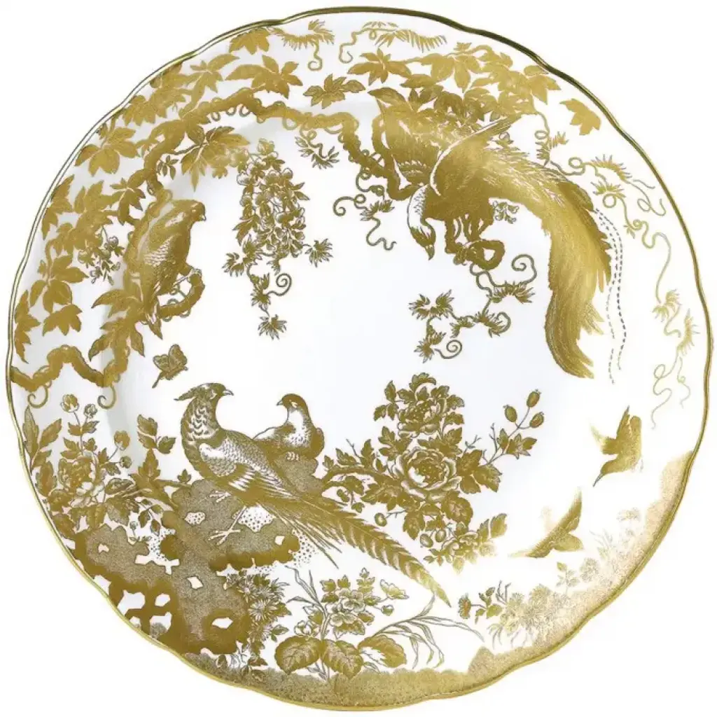 Simple gold monochrome gives the Olde Avesbury design a timeless quality that would make it at home anywhere, from a period cottage to a modern apartment. This opulent pattern looks stunning when dining by candlelight. Made in England by Royal Crown Derby. The Royal Crown Derby Porcelain Company manufactures the highest quality English fine bone china and collectibles at its headquarters in Derby, England (the English Pottery district). Although the present factory was established in 1878, the original factory was set up nearby in Nottingham Road in 1750. Queen Victoria granted permission to include the title "Royal" in the company name in 1890.