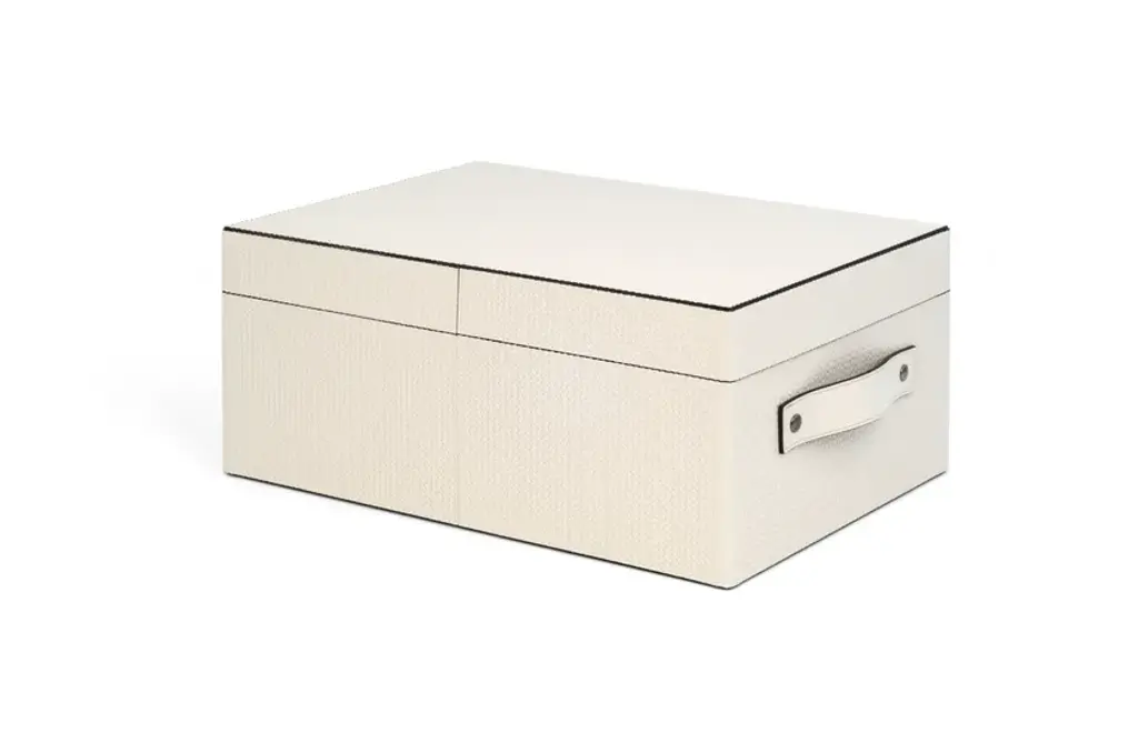 Avio is a closet box with a strong and light structure completely covered outside in premium calfskin leather. Available in two different sizes the boxes come in a wide range of color and different texture.