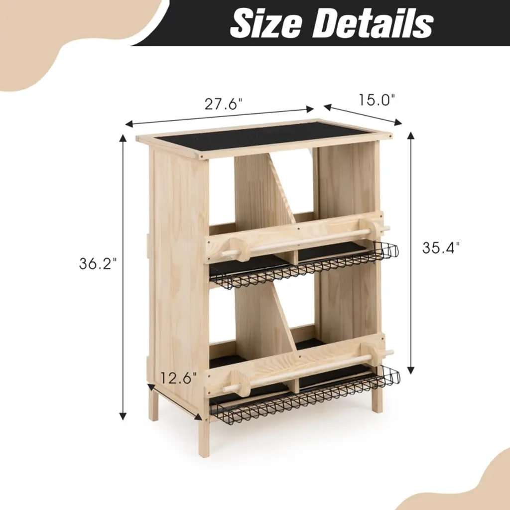 This versatile chicken coop provides a comfortable indoor/outdoor habitat with standing bars for natural roosting. Its two-tier design offers ample space for resting, nesting, and private activities through partitioned sections. Angled floors guide eggs toward front collection points, while insulated padding maintains warmth and protects eggs. The weather-resistant structure shields flocks from elements year-round, featuring a protective roof and efficient layout for easy maintenance.