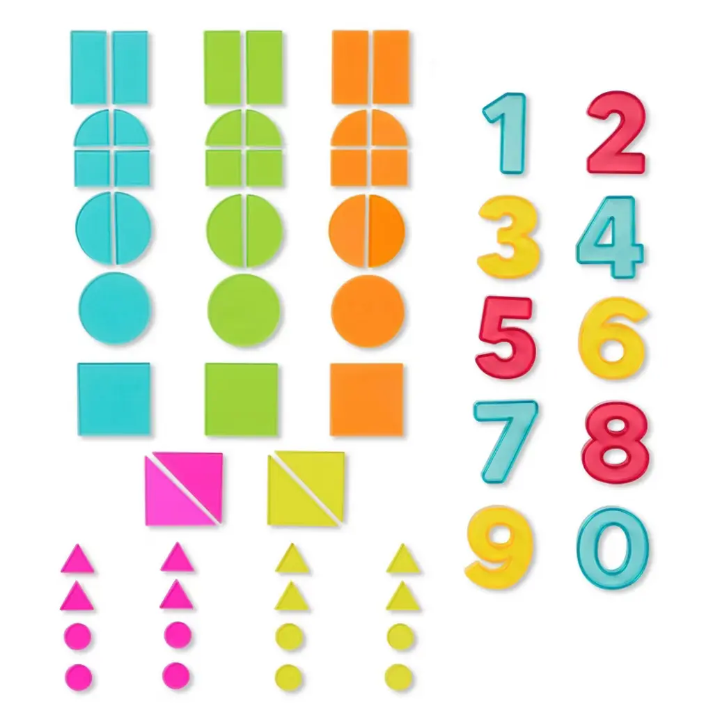 Light up and add color to learning with the Look & Shine lightbox playset from B. toys! Make playtime shine with this educational lightbox, featuring loads of hands-on and screen-free playtime opportunities. Kids can explore 50 translucent shapes and 10 numbers on the glowing surface of the lightbox, but the magic really happens with the 3 transparency sheets! Match, trace, and create over and over again, thanks to the included dry-erase markers — and then transform everything with the lightbox's 5 different colors! As kids play, they'll be practicing counting, pattern recognition, and exercising their fine motor skills and creativity. This engaging playset can be powered by USB-C (cable not included) for endless fun, or even keep shinin' on the go thanks to battery power (6 x AA batteries are required, not included). Recommended for children 3 years old and over.