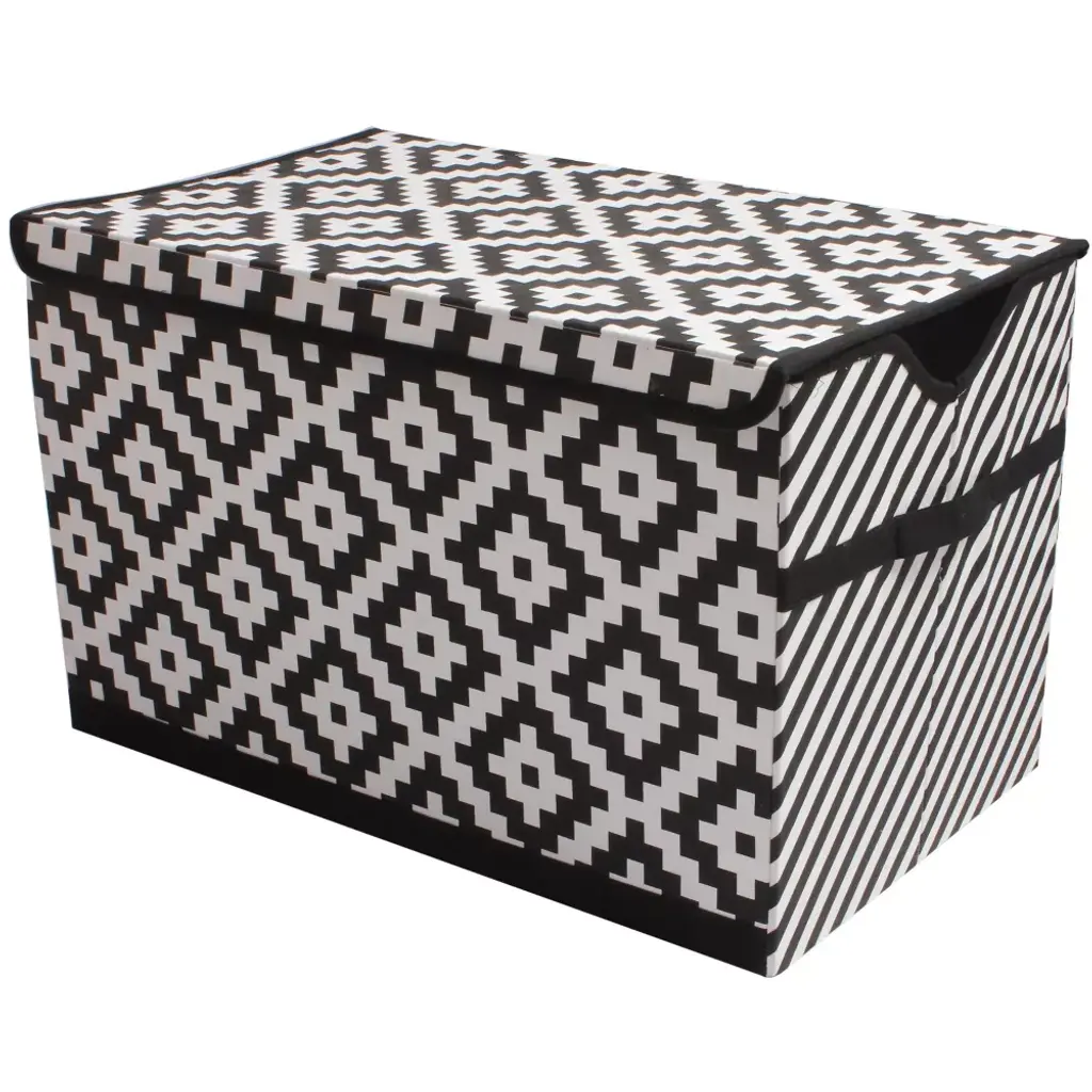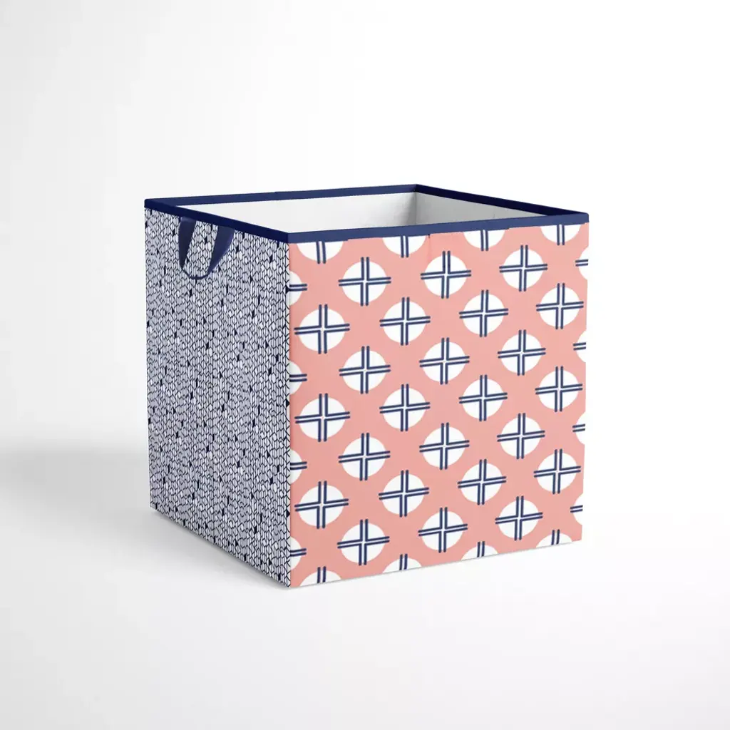 Your kiddo will learn to keep their space/playroom/gameroom/bedroom organized with the Knock-Down Storage Toy Chest from Bacati. Designed in a rectangular silhouette with Lid, this kids storage toy chest is great for storing anything from comic books or board games to small toys or craft supplies, while the closed lid-top design gives them easy access to its contents, and the two side handles make it easy to carry from one place to the other. Featuring a Bacati signature prints and pattern, it brings a sweet complement to their room decor. Great for stashing under their desks or in closets, it features a foldable design for efficient storage when not in use. Many cordinating items available to purchase separately in this Bedding Collection by Bacati. Size: 15 Inches (H) x 14.5 Inches (W) x 24.5 Inches (D)