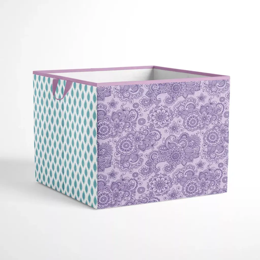 Bacati - Isabella Paisley Aqua/lilac/purple Fabric Storage Box/tote Large