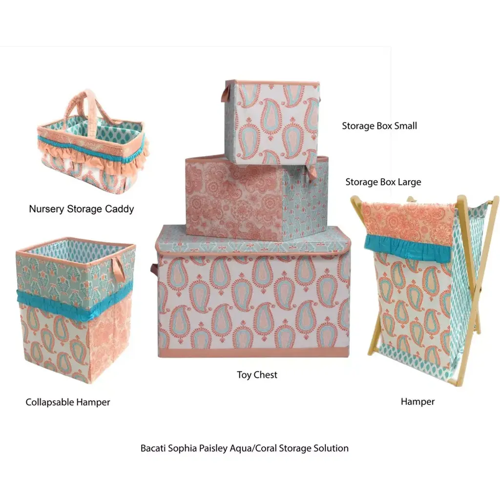 Bacati - Sophia Paisley Aqua/coral Fabric Storage Toy Chest