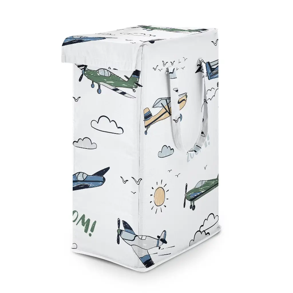 Your kiddo will learn to keep their space/playroom/gameroom/bedroom organized with the Knock-Down Storage Toy Chest from Bacati. Designed in a rectangular silhouette with Lid, this kids storage toy chest is great for storing anything from comic books or board games to small toys or craft supplies, while the closed lid-top design gives them easy access to its contents, and the two side handles make it easy to carry from one place to the other. Featuring a Bacati signature prints and pattern, it brings a sweet complement to their room decor. Great for stashing under their desks or in closets, it features a foldable design for efficient storage when not in use. Many cordinating items available to purchase separately in this Bedding Collection by Bacati. Size: 15 Inches (H) x 14.5 Inches (W) x 24.5 Inches (D)