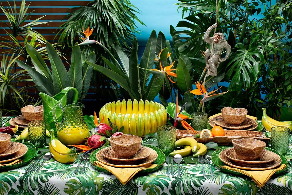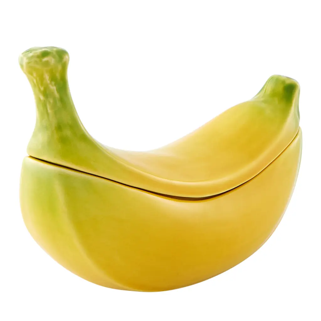 Brighten your table, cabinet, or shelf with this lidded banana-shape earthenware container. It lets you stow keys, spare change, and other items out of sight in a delightfully whimsical way.