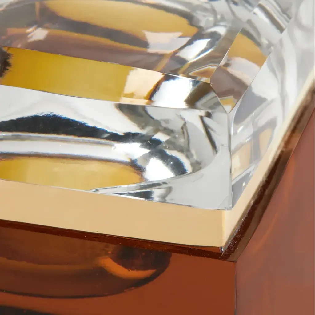 A glamorous little bijou that makes a big impression, the Barleto Box brings a jewel-like sparkle to a vanity, coffee table, or any surface in need of some extra adornment. From its thick cast glass to its polished brass trim, the Barleto conveys the quality and craftsmanship of a bygone era, though its crystalline clarity and rich amber base shines with nothing less than utter newness. A curio that will indeed spark curiosity—and admiration.