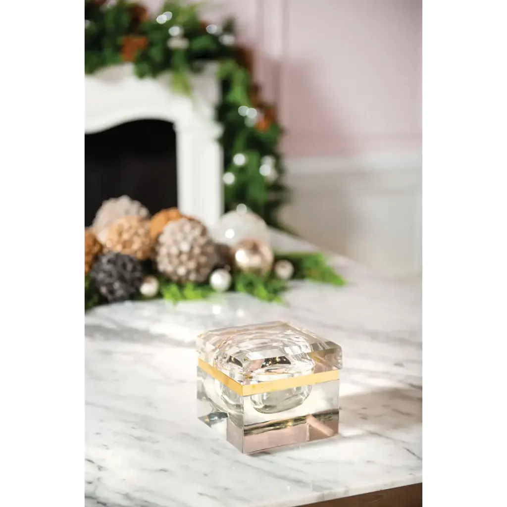 A glamorous little bijou that makes a big impression, the Barleto Box brings a jewel-like sparkle to a vanity, coffee table, or any surface in need of some extra adornment. From its thick cast glass to its polished brass trim, the Barleto conveys the quality and craftsmanship of a bygone era, though its crystalline clarity shines with nothing less than utter newness. A curio that will indeed spark curiosity—and admiration.