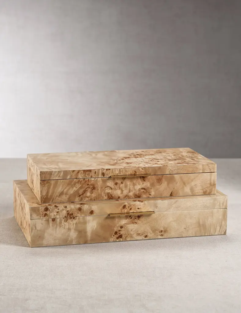 We simply love an elevating touch of burl wood. The Bartell box offers a rich tabletop accent with a practical bit of storageperfect for dressers, bookshelves, or console tables alike. The inside is lined with cotton fabric because when it comes to luxury, every detail matters.