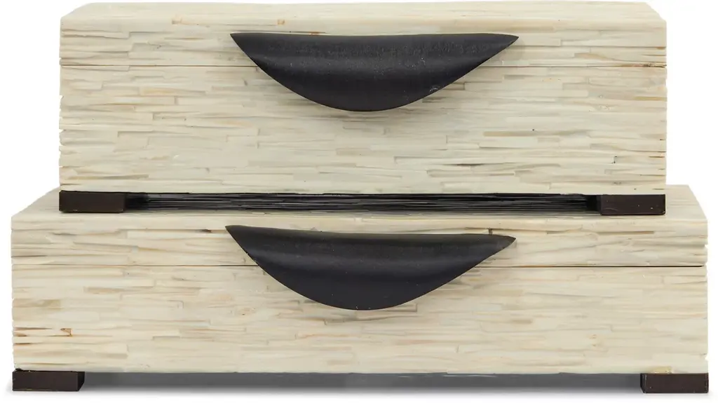 Elevate your home's décor with the timeless elegance of our Bastrop box. This piece is beautifully made with faux bone and wood and is available in both a small and large size. Enhance your space with the addition of one box or stack them on top of one of another for height and added space to safeguard your cherished keepsakes. Please select your size before adding to cart.
