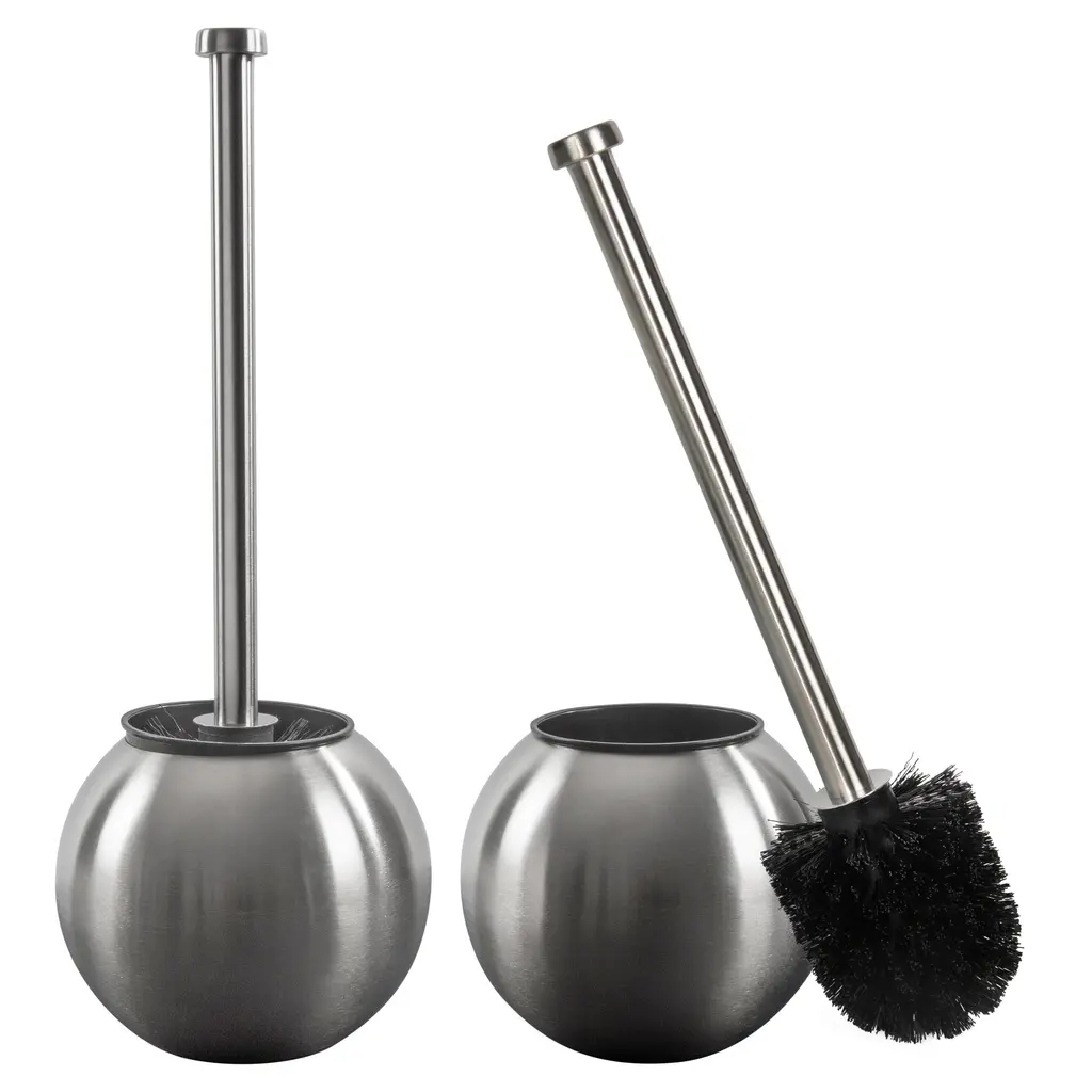 Bath Bliss 2 Pack Globe Design Toilet Brush And Holder In Stainless Steel - Dimensions: 5.5" Rd X 14.5" - Sliver