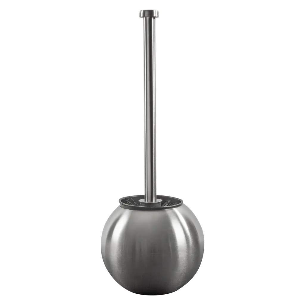 Store your toilet brush in plain sight with the attractive Bath Bliss Toilet Brush Set. This brush and decorative storage container is discreet and will make a lovely accent to most bathroom decors. The handle and canister for the bathroom toilet brush have a slick finish and are constructed from a hygienic and rust-resistant stainless steel. The set also has a durable, rounded, bristle brush that is designed to remain hidden when the product is not in use. This stainless steel toilet brush will keep both your bathroom and toilet looking their best. Treated to resist mildew, bacteria and rust. Globe shaped design.