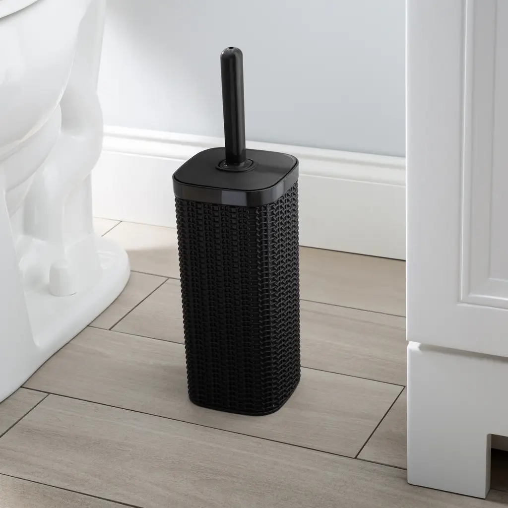 Store your toilet brush in plain sight with the attractive Bath Bliss Toilet Brush Set. This brush and decorative storage container is discreet and will make a lovely accent to most bathroom decors. The handle and canister for the bathroom toilet brush have a slick finish and are constructed from a hygienic and rust-resistant. The set also has a durable, rounded, bristle brush that is designed to remain hidden when the product is not in use. This toilet brush will keep both your bathroom and toilet looking their best.