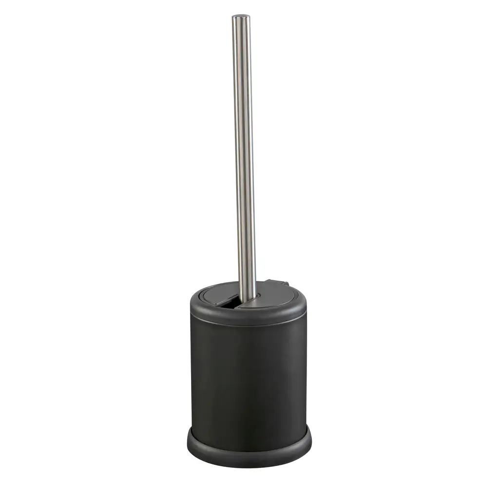 Store your toilet brush in plain sight with the attractive Bath Bliss Toilet Brush Set. This brush and decorative storage container is discreet and will make a lovely accent to most bathroom decors. The handle and canister for the bathroom toilet brush have a slick finish and are constructed from a hygienic and rust-resistant stainless steel. The set also has a durable, rounded, bristle brush that is designed to remain hidden when the product is not in use. This stainless steel toilet brush will keep both your bathroom and toilet looking their best. Treated to resist mildew, bacteria and rust. Comes with an opening and closing lid.