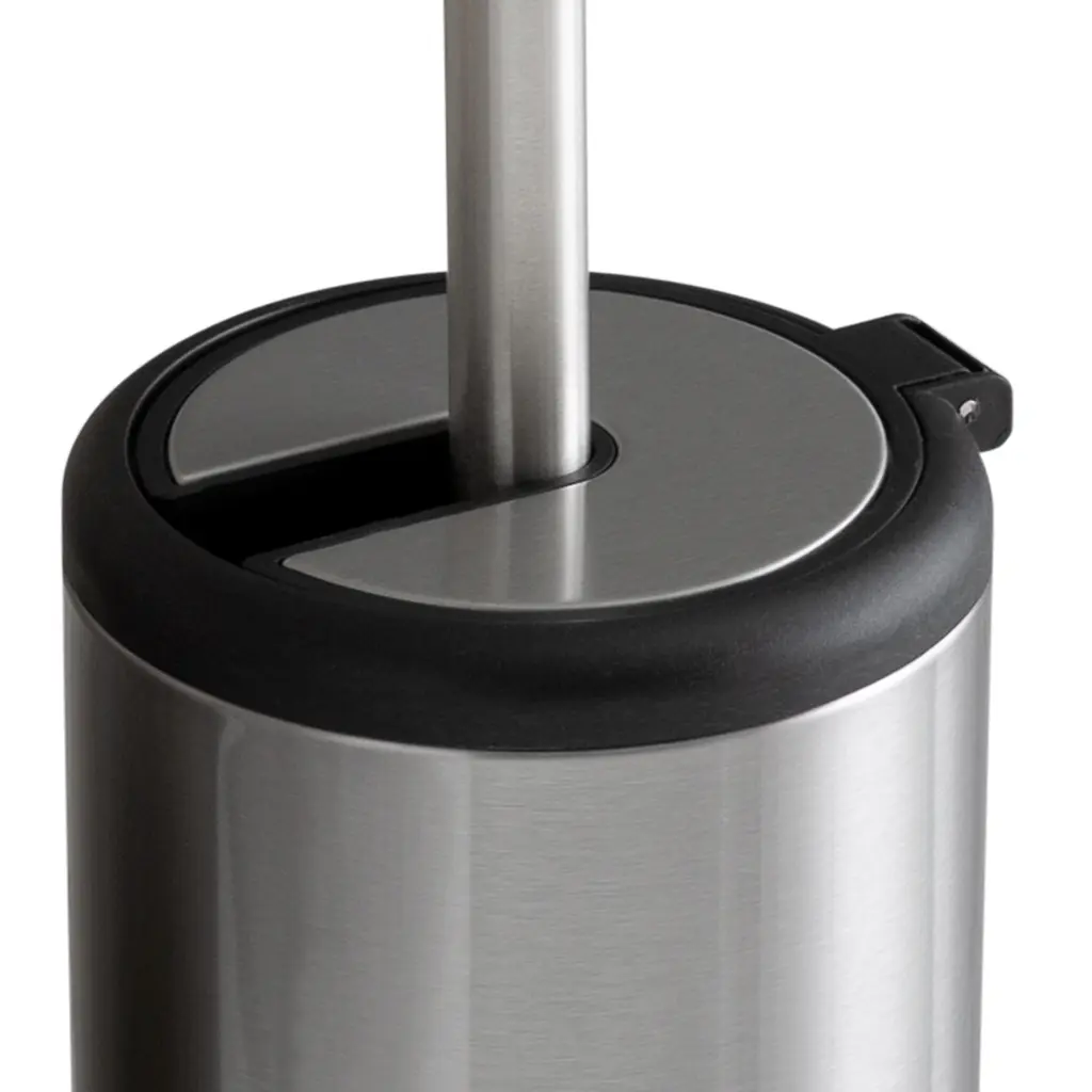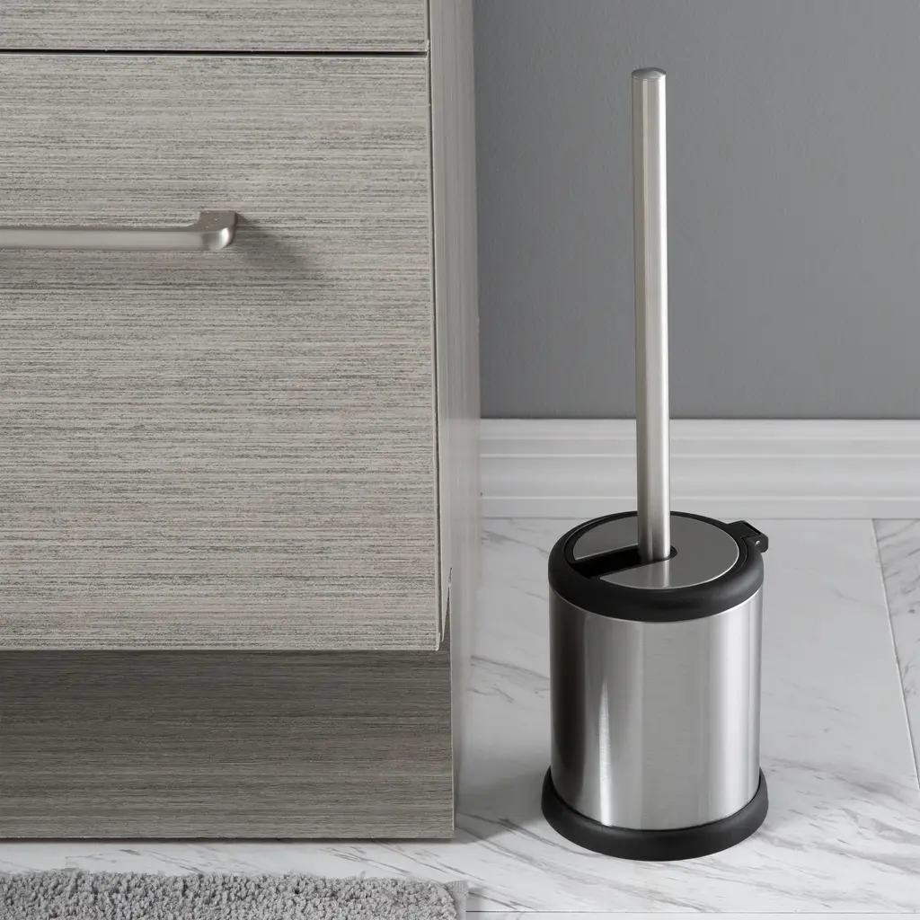Bath Bliss Self Closing Lid Toilet Brush And Holder In Stainless Steel - 4.5" Rd X 14.75" - Grey