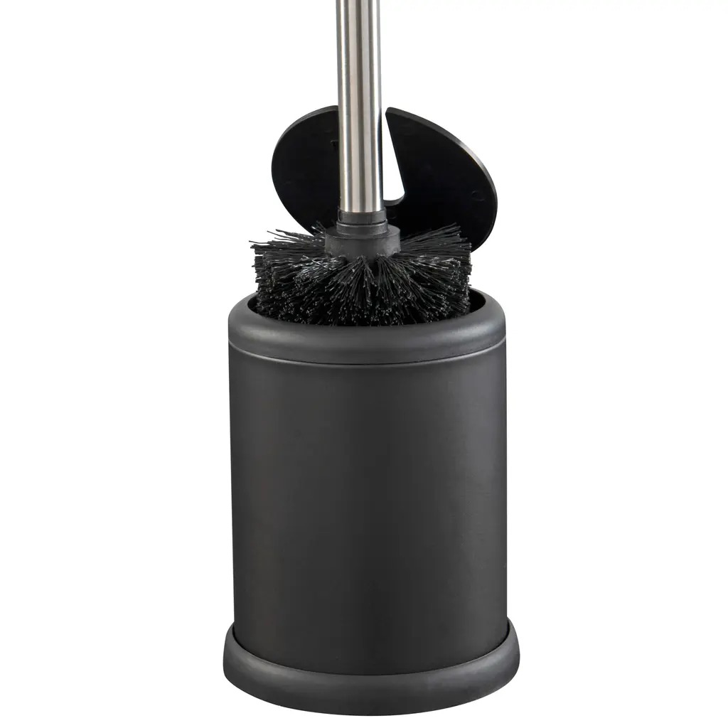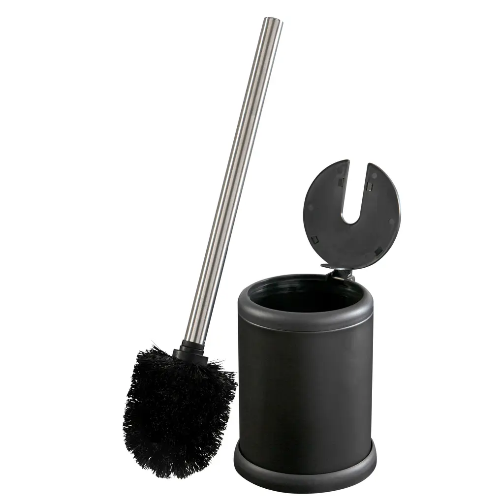 Store your toilet brush in plain sight with the attractive Bath Bliss Toilet Brush Set. This brush and decorative storage container is discreet and will make a lovely accent to most bathroom decors. The handle and canister for the bathroom toilet brush have a slick finish and are constructed from a hygienic and rust-resistant stainless steel. The set also has a durable, rounded, bristle brush that is designed to remain hidden when the product is not in use. This stainless steel toilet brush will keep both your bathroom and toilet looking their best. Treated to resist mildew, bacteria and rust. Comes with an opening and closing lid.
