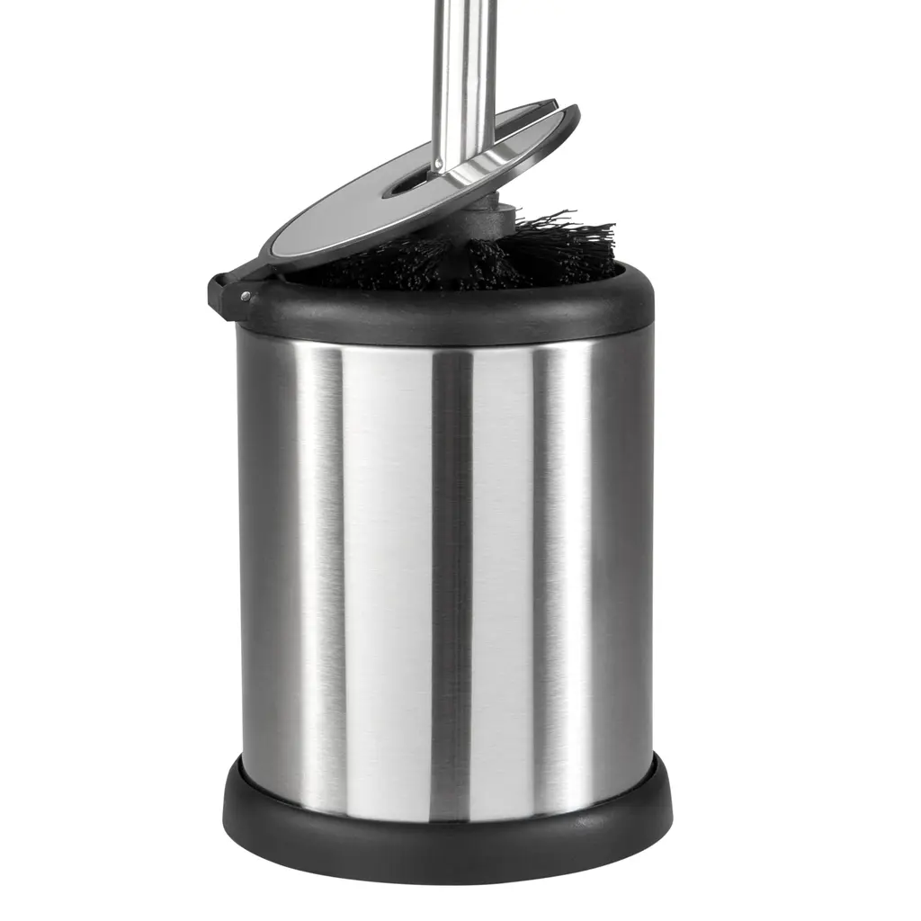 Bath Bliss Self Closing Lid Toilet Brush And Holder In Stainless Steel - 4.5" Rd X 14.75" - Silver