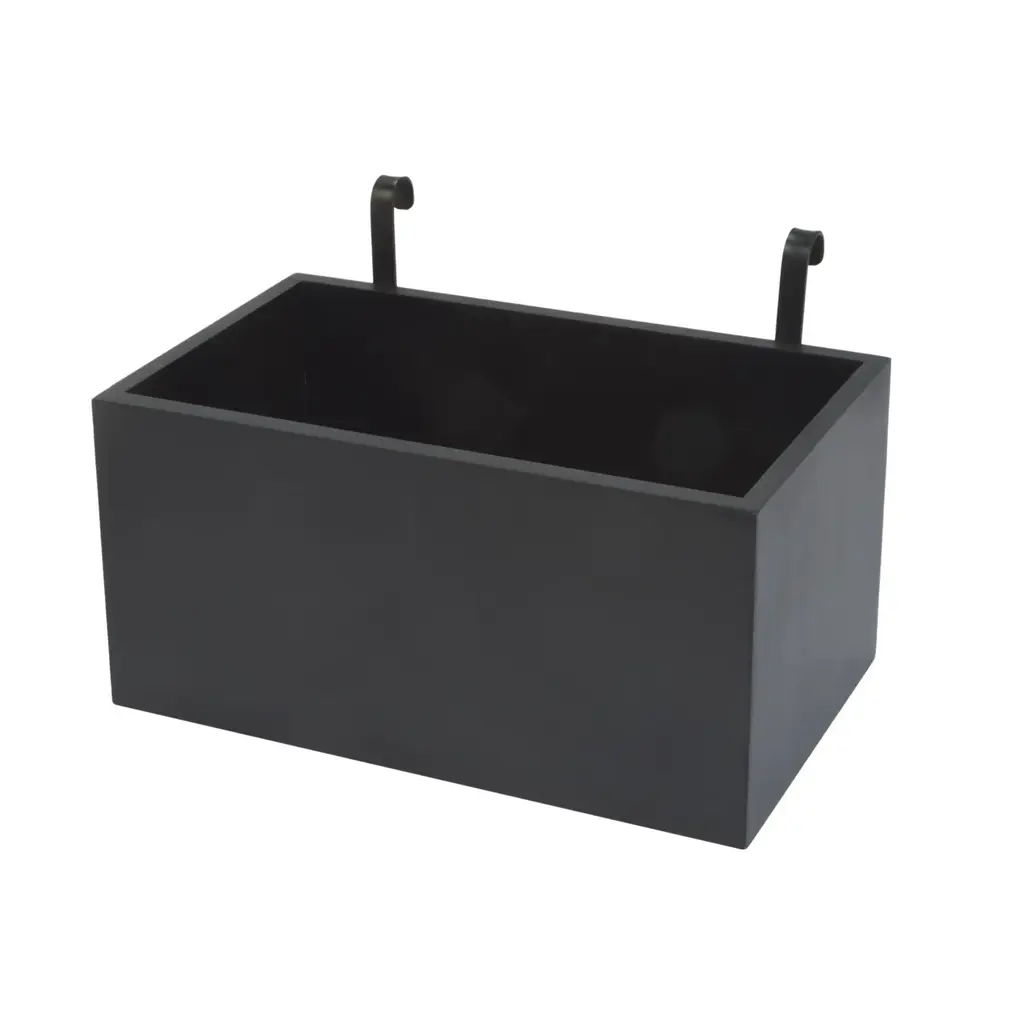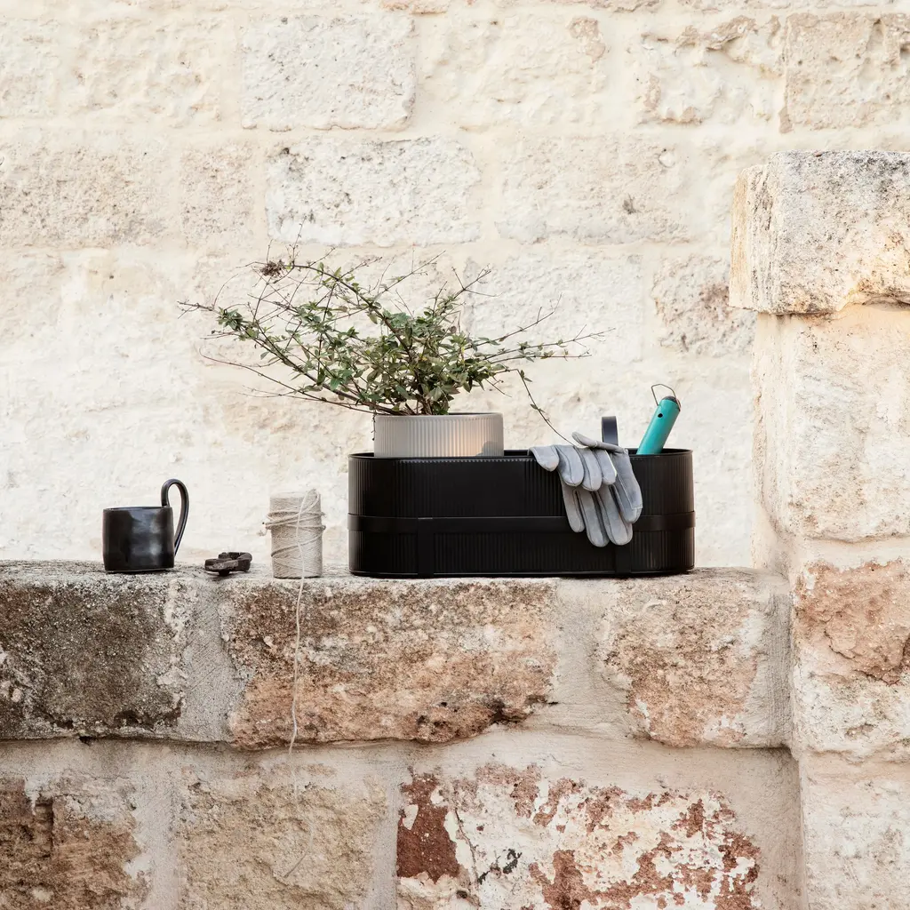 Ferm Living extends its Bauhaus-inspired outdoor planter with a rounded model for the balcony. Its clean industrial look is softened by a palette of natural colors in powder-coated, weatherproof galvanized steel. Easily mounted on a rail, the box's dual hooks and metal bracket hold it securely and it has a carefree smart drainage system with a built-in reservoir.