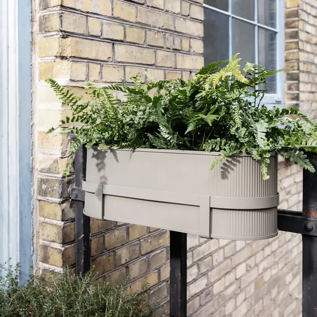 Enhance your well-being on the balcony or terrace with a stylish balcony box planter from the BAU series. The boxes borrow their expression from the uncluttered lines and industrial surfaces of the Bauhaus architecture, thereby giving any balcony a vibrant and classic look. They are easily mounted on a rail with the two hooks and its metal bracket to make sure it hangs steadily. To give your plants the best care the boxes have a smart drainage system at the bottom, and the metal has a special treatment to make the boxes weatherproof.