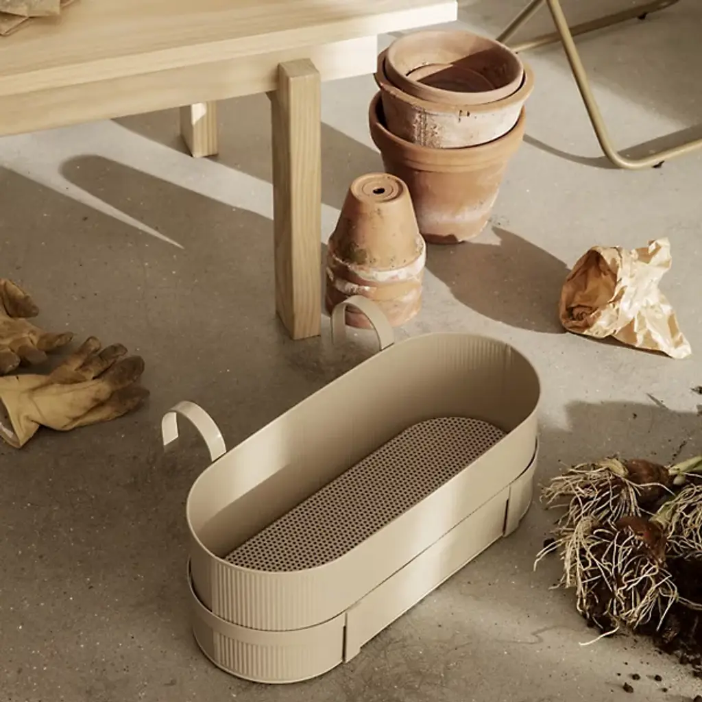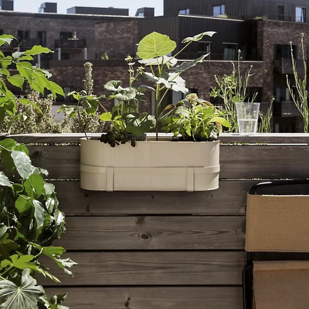 Enhance your outdoor space with the Bau Balcony Outdoor Planter Box from Ferm Living. Clean, uncluttered lines run along the galvanized steel surface for an industrial vibe inspired by Bauhaus architecture. Two hooks and a metal bracket ensure this piece hangs easily on a balcony or patio, meaning your plants receive the care they deserve. With a weatherproof coating and a smart drainage system, this planter box is a smart, versatile choice for adding timeless class to the space.