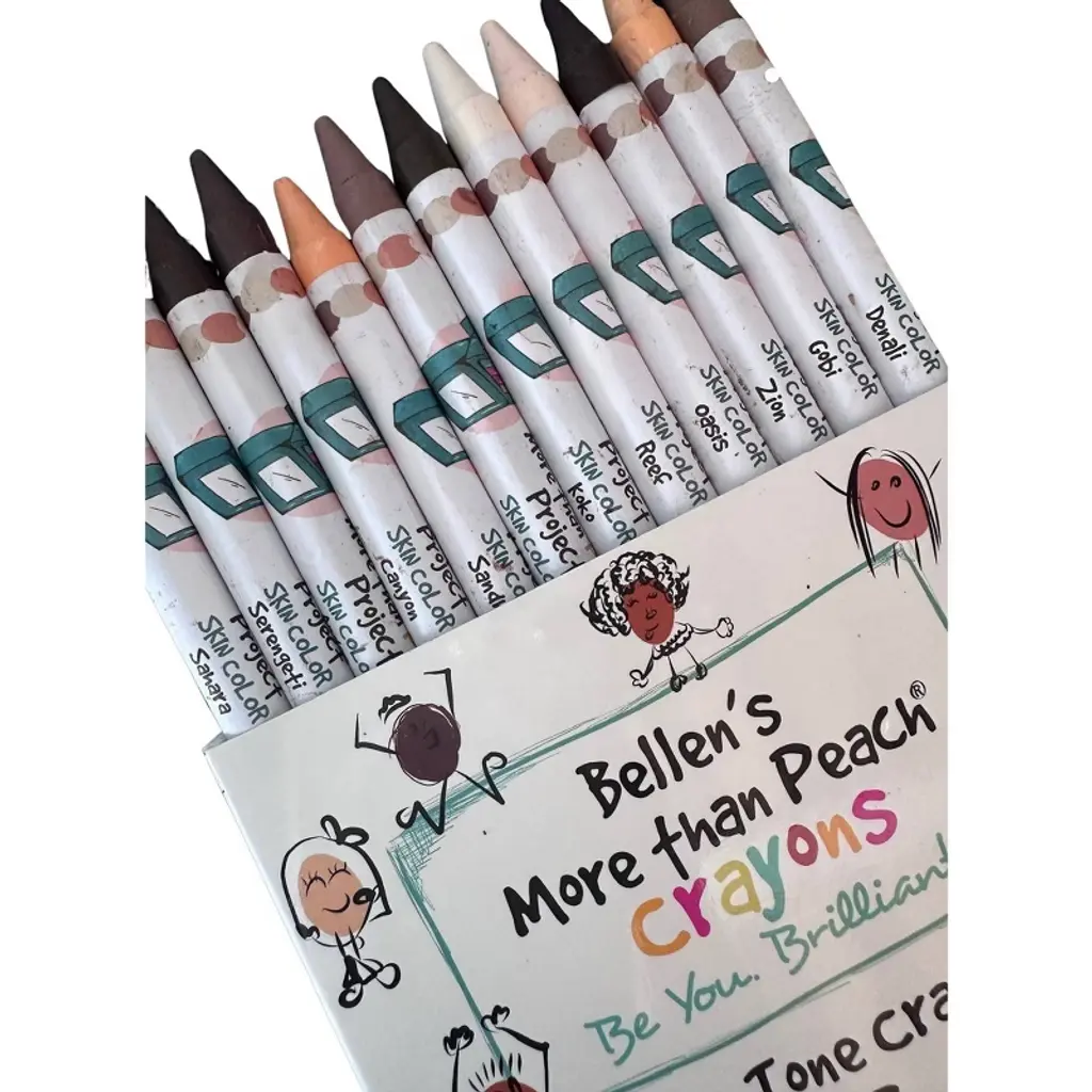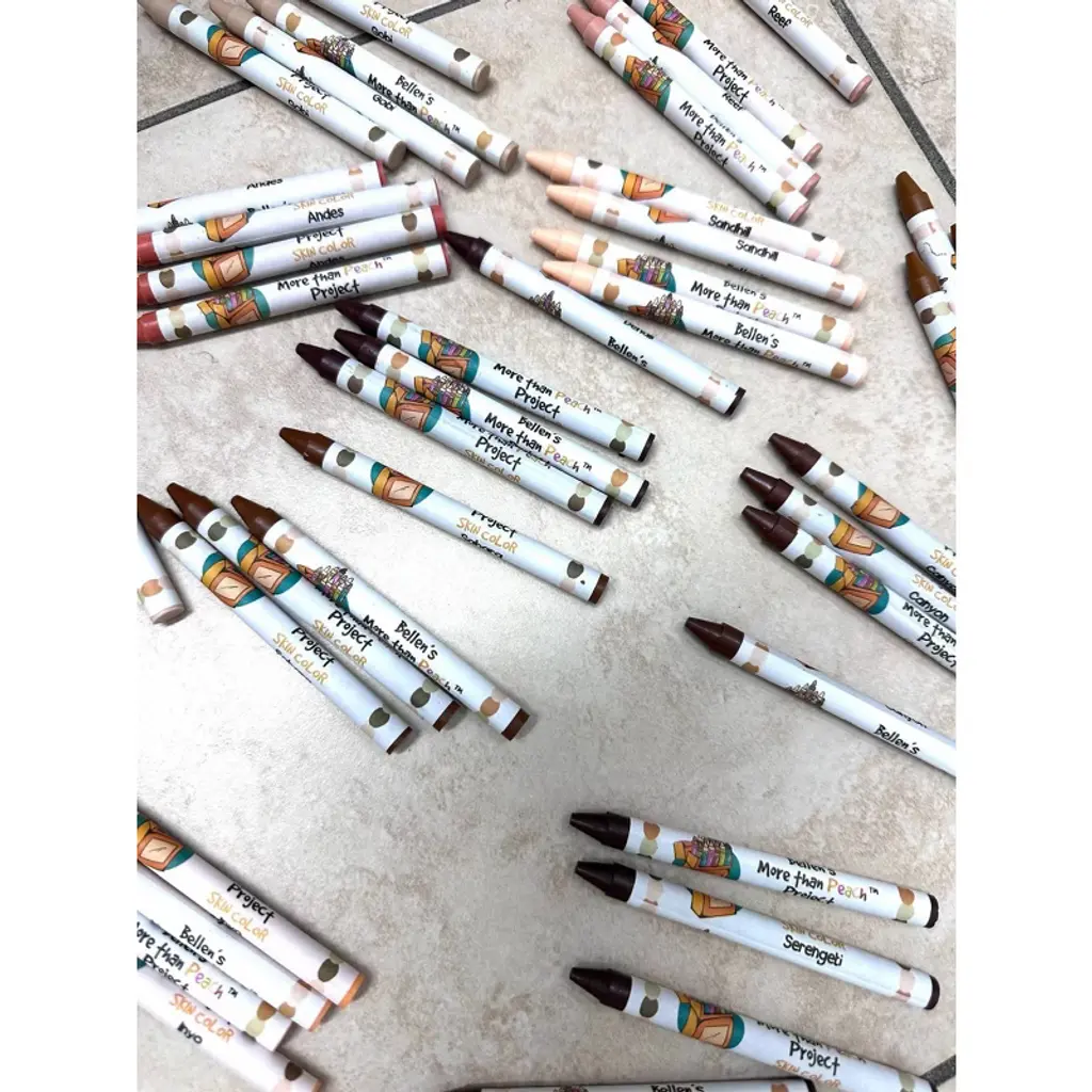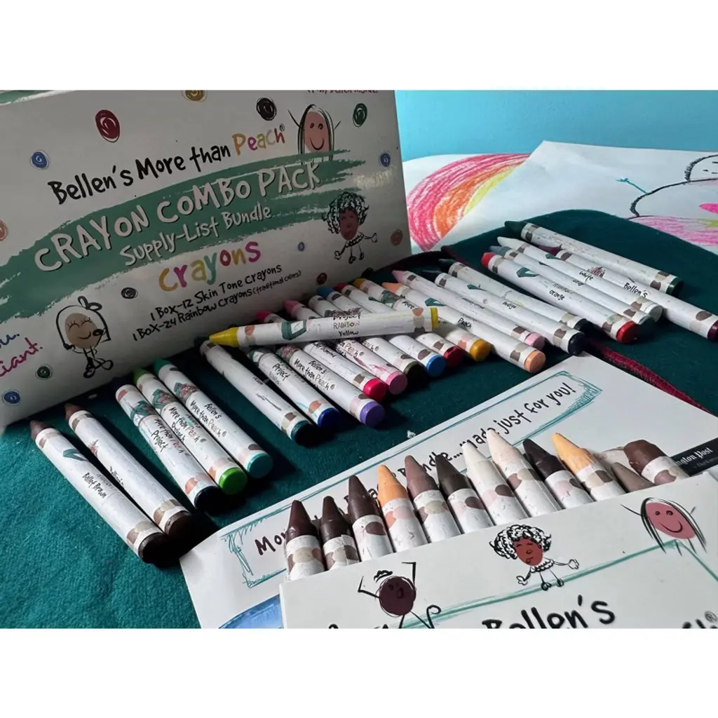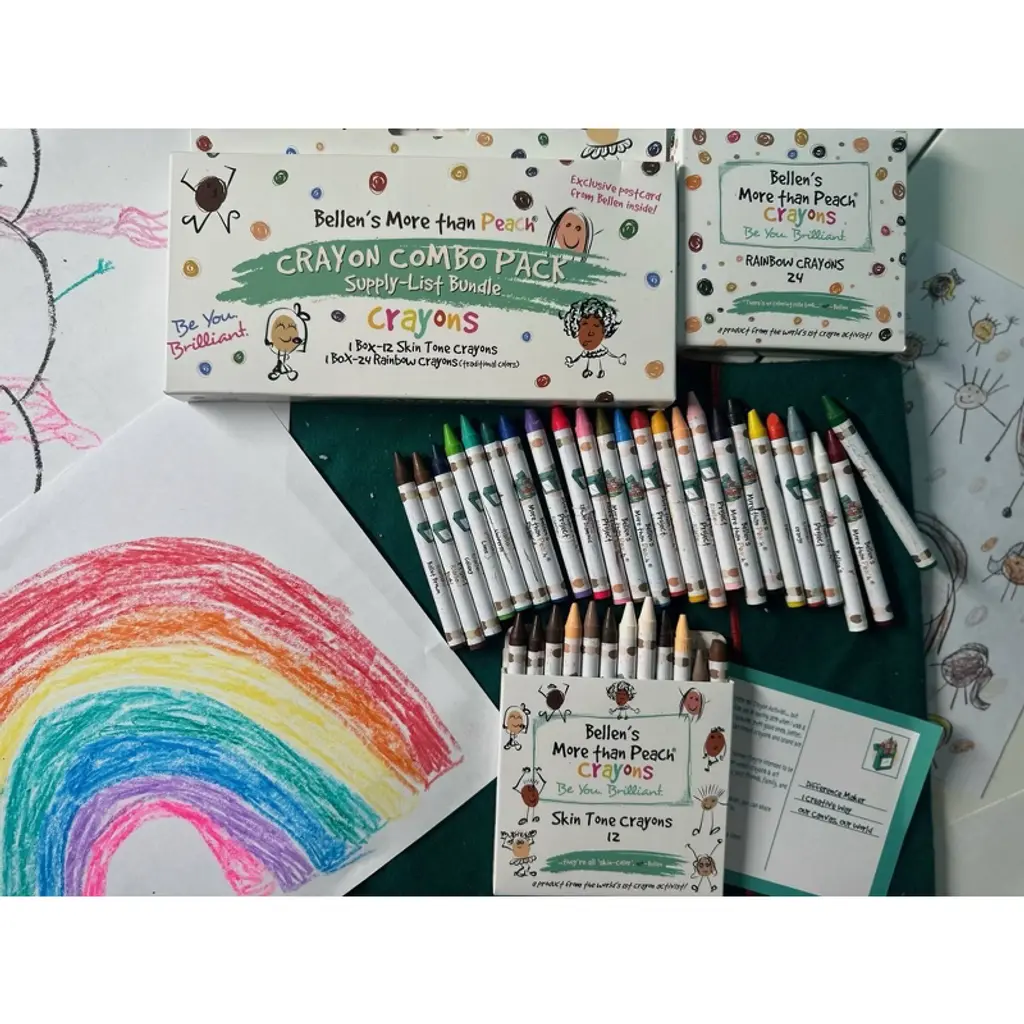 EACH PREMIUM SUPPLY-LIST BUNDLE INCLUDES THE FOLLOWING: • 1 Box More than Peach Rainbow Crayons (24ct.) • 1 Box More than Peach “Skin Color”/Skin-tone/Multicultural Crayons (12ct.) • 1Postcard with messaging from Bellen Add More than Peach, the cool crayons on a mission, to your school supply list today! The authentic brand built for brilliant faces..and spaces!! About the brand: "I was confused that only one crayon was once named flesh by a big brand and that only one crayon--peach--was called "skin color" by my friends and classmates. So, after growing the language in my own classroom & community with “many beautiful colors”, I decided it was time for more options in the crayons and the crayon brand we choose. I created More than Peach to “really, actually” grow the language and interactions in classrooms everywhere to celebrate every single kid in the most meaningful ways like no crayons before! From the start, More than Peach has included skin tone crayons and many other brilliant shades because it’s always been about creating masterpieces and living life in full color! But about the skin tones, they are all named "skin color" AND named after natural landmarks from around the world. Why? To serve as a love letter to each kid who uses them in celebration of “many beautiful colors!” -Bellen Bright light & industry leader, Bellen Woodard, is the creator of Bellen’s More than Peach® Project, World’s 1st Crayon Activist, and “skin color” crayon pioneer. She has made history by transforming the crayon industry and changing the world…one crayon at a time and is doing it again in the world of dance as Ballet Brown expands default perceptions and builds perspective! As a leader in product inclusion—More than Peach products profoundly resonate and inspire becoming a classroom and family favorite. You can find More than Peach products in museums across the country and featured by TIME, Scholastic Magazine’s “Most Inspirational”, The Today Show, PEOPLE, Lupita Nyong’o, Vanity Fair Italy, The Washington Post, The Kelly Clarkson Show, and many other top media outlets. And she’s just getting started! ©2025 More than Peach, LLC. All rights reserved. More than Peach, More than Peach Project, Crayon Activist, “There’s no coloring rule book,” Bellen, Ballet Brown and logos are protected trademarks of More than Peach, LLC.