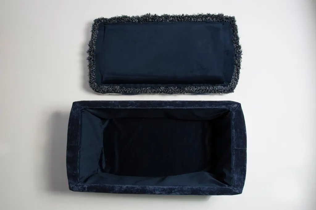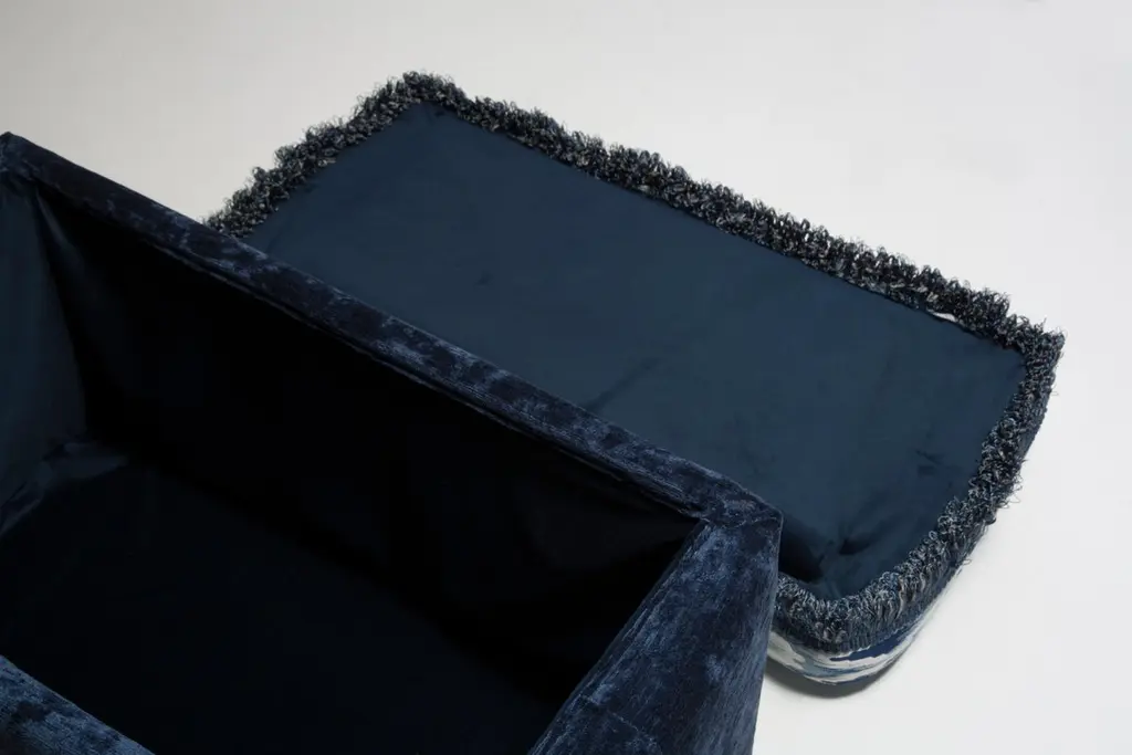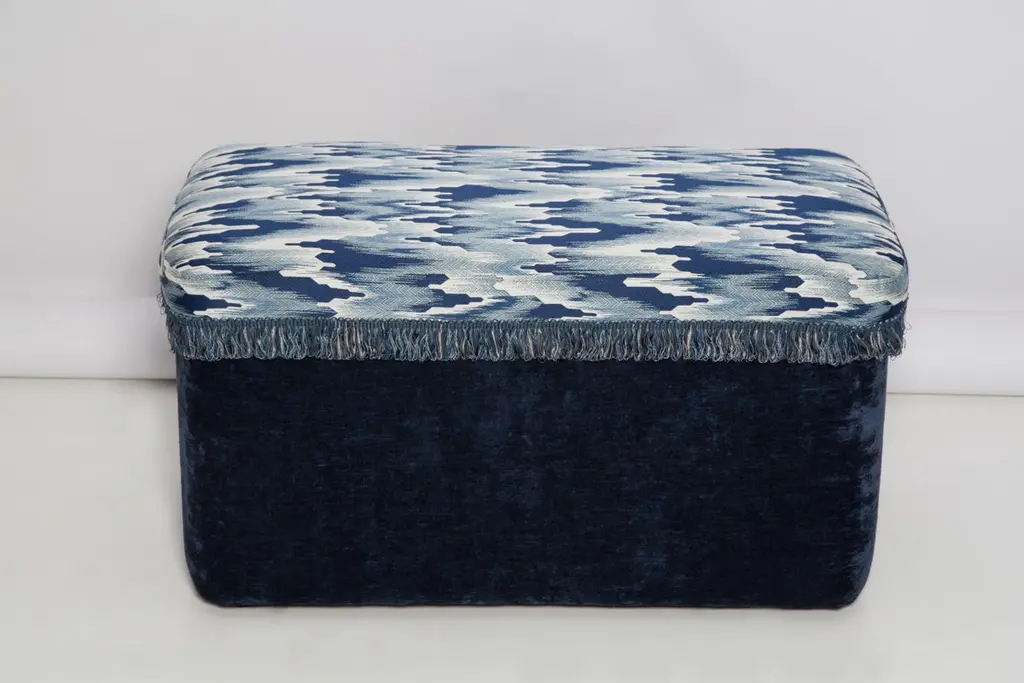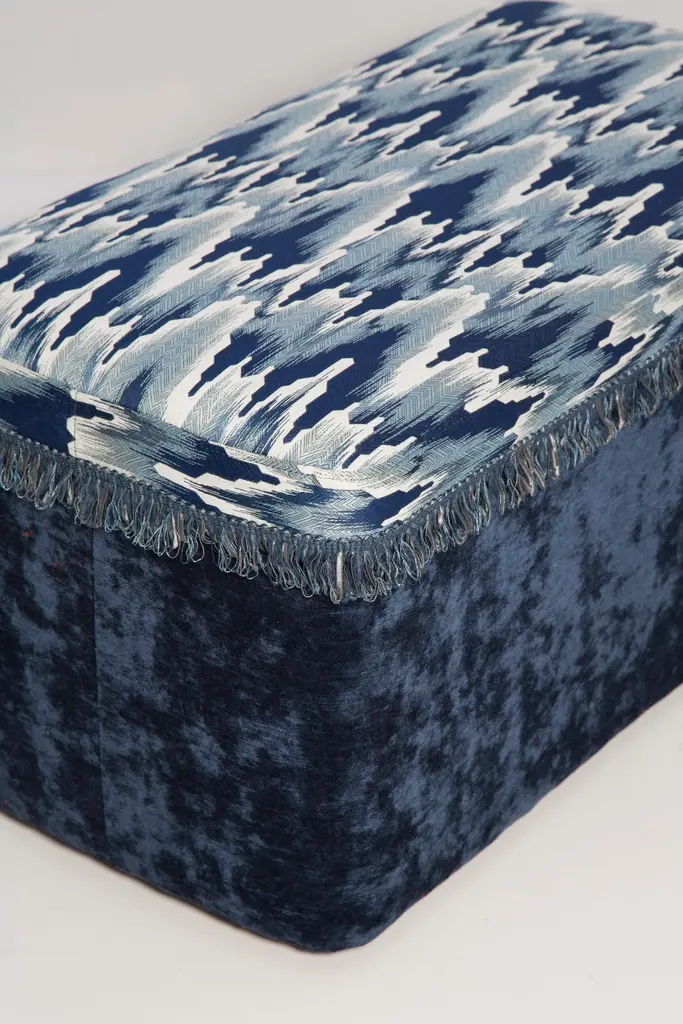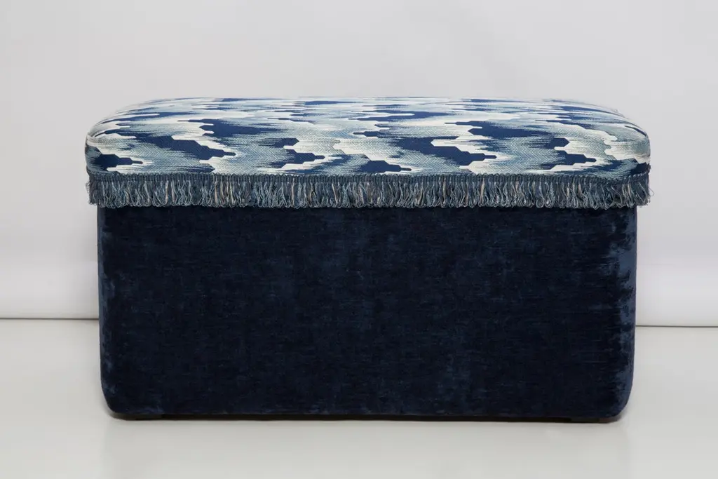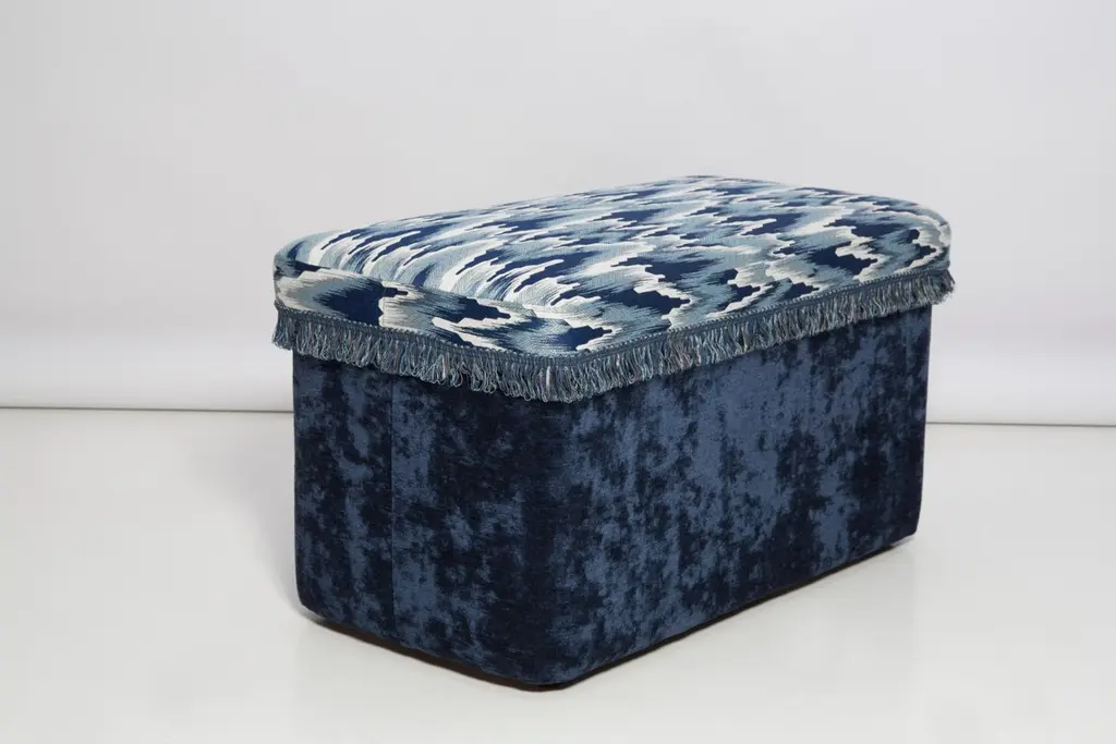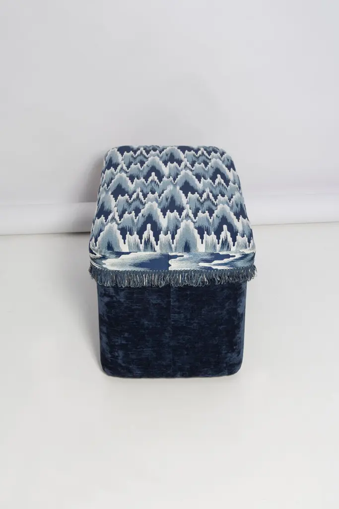 Bench Pouffe With Box, Blue Fandango Jacquard, By Vintola Studio, Europe, Poland