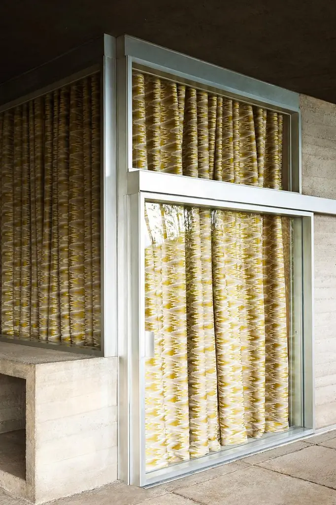 Contemporary Pouffe inspired of 1960s style. The pouffe consist of an upholstered part, a seat and box under the seat, characteristic of the 1960s style.Bench was designed by Vintola Studio, a Polish brand created by Ola Szewczul, designer of vintage interior architecture and photographer.Size: 100 x 50 x height 45 cm (inside: 80x30x30 cm)Upholstery:A Fandango jacquard of contemporary taste, expressed in a wavy horizontal flame pattern and characterized by a refined and complex weave structure, 120 threads/cm, in which it is possible to perceive echoes of different textile traditions. Suitable for curtains and light use upholstery. Designed by italian company - Dedar. We can prepare this pouffe also in another size and option of fabric.Please check the last picture with color of fabric samples.