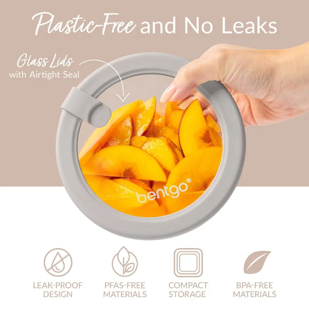 Bentgo Glass Signature Food Storage is a stylish, premium solution for organizing and keeping your meal prep, leftovers, and ingredients fresh. This 10-piece set features 5 high-quality glass storage containers with lids and 5 chic silicone-sealed tempered glass lids that provide an airtight, leakproof seal. Designed with sustainability in mind, each container is made entirely from premium borosilicate glass – stronger than traditional glass and able to withstand higher temperatures without cracking – offering a plastic-free, PFAS-free alternative that’s both durable and lightweight. Featuring a variety of sizes, this set is perfect for everything from meal prep and lunch to storing leftovers and snacks. The high-quality, crystal-clear glass design not only keeps your food fresh and easy to identify but also adds a touch of elegance to your kitchen. Built-in steam valves ensure proper venting when heating and splatter-free microwaving, while the containers nest seamlessly for space-saving storage. Microwave, oven, freezer, and dishwasher-safe, these versatile glass meal prep containers combine function with style. Whether you’re storing fresh fruits, hearty pastas, or proteins, the Bentgo Glass Signature Food Storage set is the stylish choice that elevates your kitchen while reducing your environmental footprint.Premium Glass Food Storage: This 10-piece set includes high-quality glass containers with lids, perfect for storing meals, lunch, leftovers, and snacks. Made from durable, plastic-free, BPA-free borosilicate glass.Leakproof & Airtight: Each container features a tempered glass lid with a silicone seal, ensuring an airtight, leakproof closure for fresh food storage.Built-In Heat Release Valve & Easy to Clean: Built-in steam valves allow splatter-free microwaving, and the dishwasher-safe design makes cleanup effortless.Sustainable & Stylish: Lightweight, durable, and plastic-free, these glass meal prep containers come in various sizes to fit your needs while reducing environmental impact.What You Get: 5 glass containers and 5 airtight lids in a variety of sizes, backed by a 2-year manufacturer’s warranty for peace of mind.