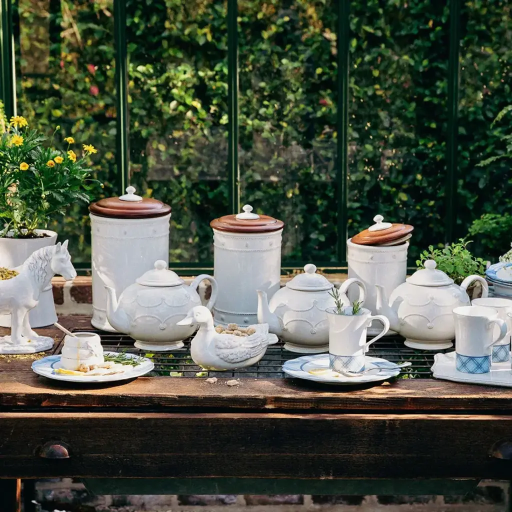Berry & Thread Whitewash 13" Canister With Wooden Lid