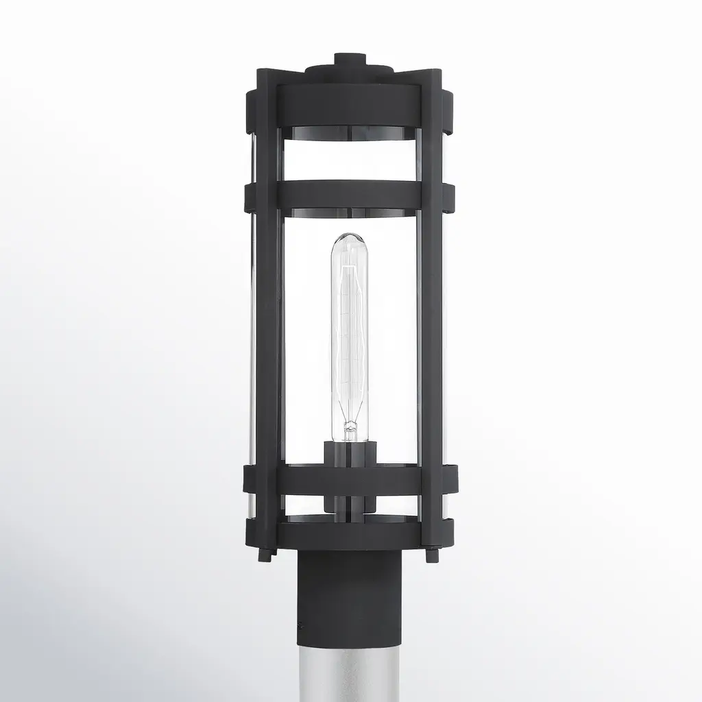 Series 3151 post luminaire feature blown glass. Blown clear glass is hand-decorated in a black opaque finish.