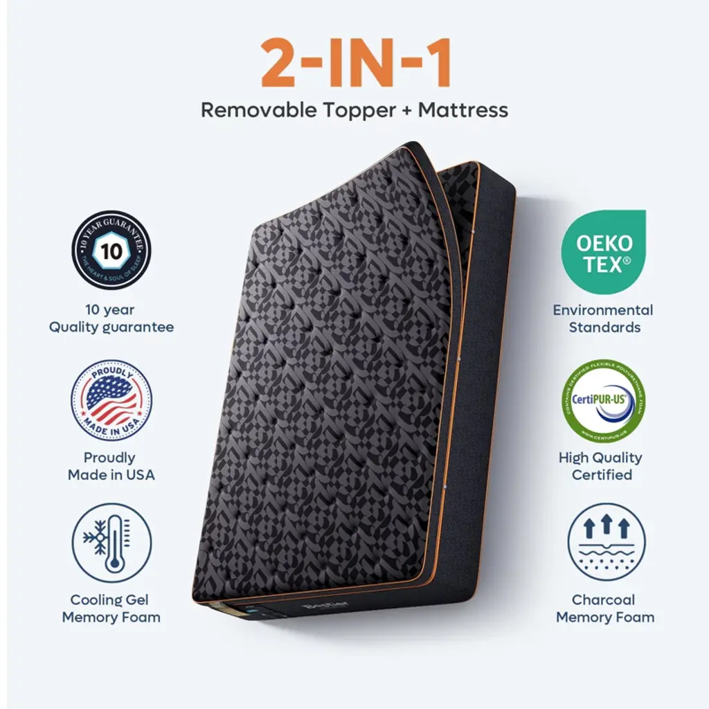 Bestier 14 Inch Cal King Size Pillow Top Mattress, Organic Wool Gel Memory Foam Mattress In A Box, Black, Made In Us