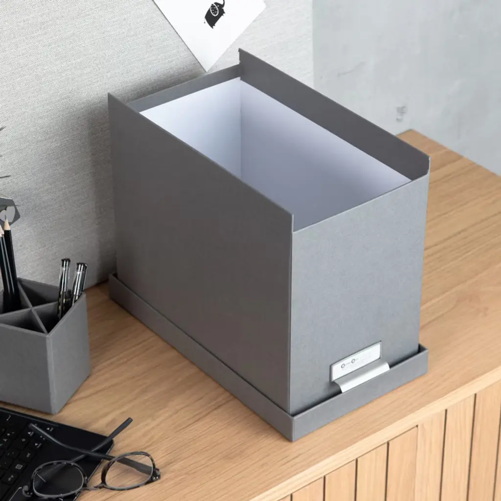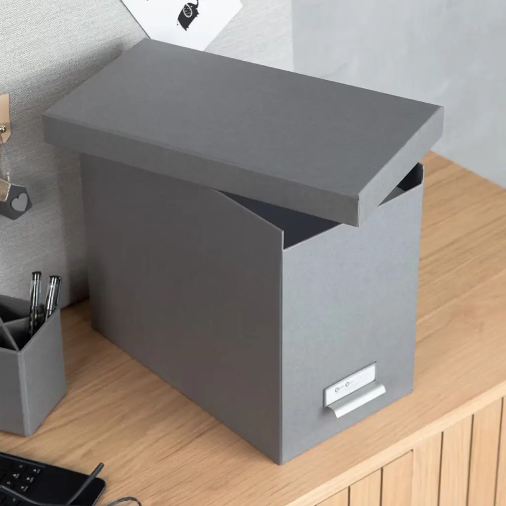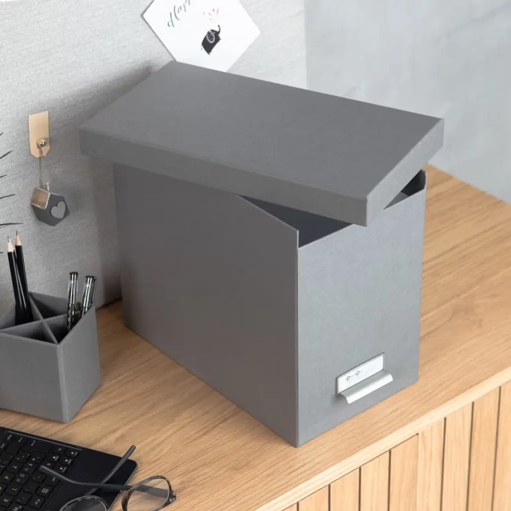 Bigso John Fiberboard Label Frame Desktop File Storage Box - Document Organizer For Paperwork - Hanging File Box W/ Lid - 7.4′′x13′′x10.4′′
