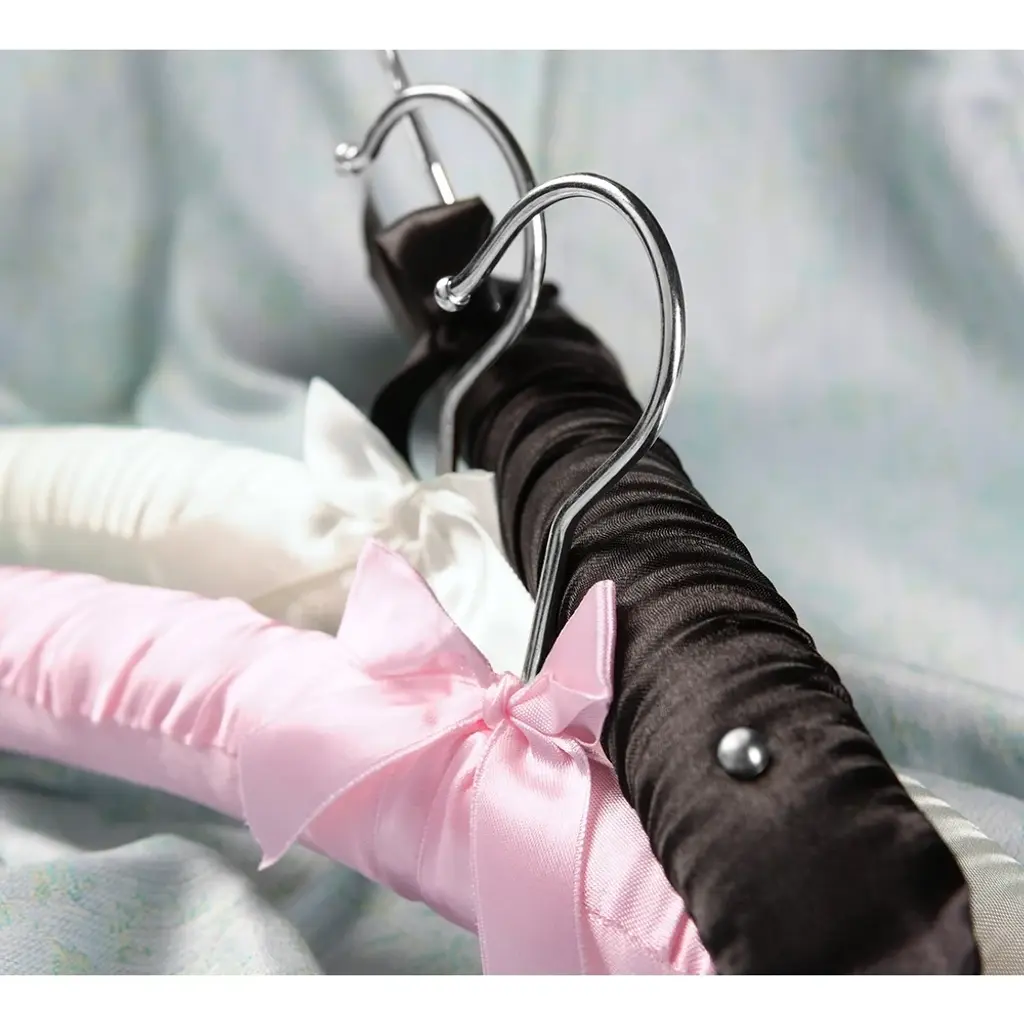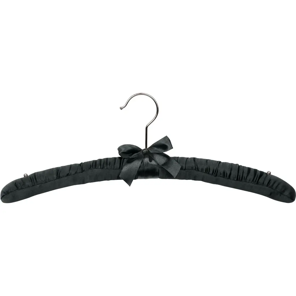 Soft black satin with chrome studs makes this hanger ideal for delicate garments with straps.