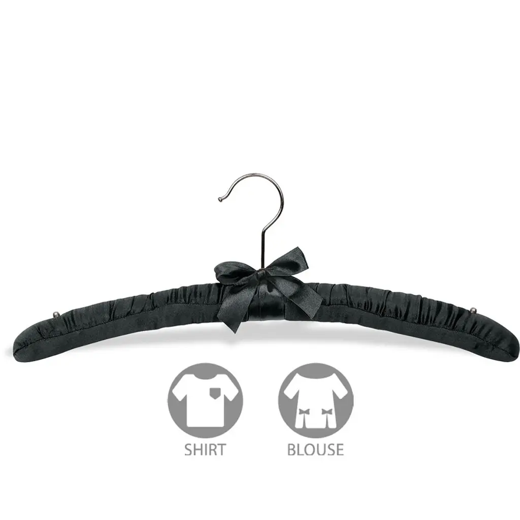 Black Satin Padded Top Hangers, Thick Padded Hangers With Box And Shoulder Studs - Box Of 10