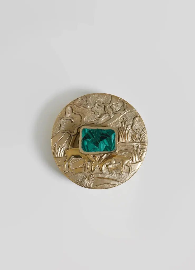Blackbuck Round Trinket Box In Brass & Semi Precious Stone, Viya By Vikram Goyal