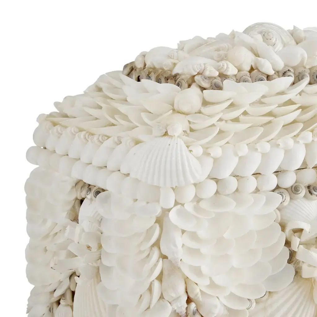 The exquisite artistry of the Boardwalk White Shell Jewelry Box has its origins in Victorian Shell Work. The handmade decorative accent is regally balanced on conical shell legs to enhance the delicate beauty of this decorative box. Though it is artful, it will also be a handy storage helpmate. Ships In 7-10 Business Days This image is for illustrative purposes only. The colors shown are accurate within the constraints of lighting, photography, and the color accuracy of your screen.