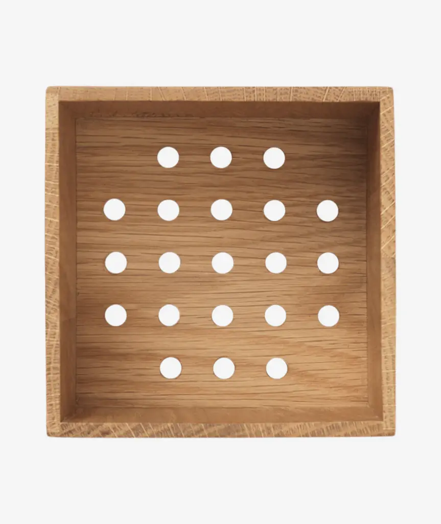 The Bon Garlic Box is a thoughtful addition to the Bon Collection. Crafted from delicate, solid oak sheets, it showcases a refined aesthetic that combines craftsmanship with functionality. The box features precise corner joints and ventilation holes at the base, keeping garlic fresh and dry while protecting it from sunlight. Handcrafted from FSC™-certified wood, the design balances elegance with modern utility, making it a perfect fit for contemporary kitchens.