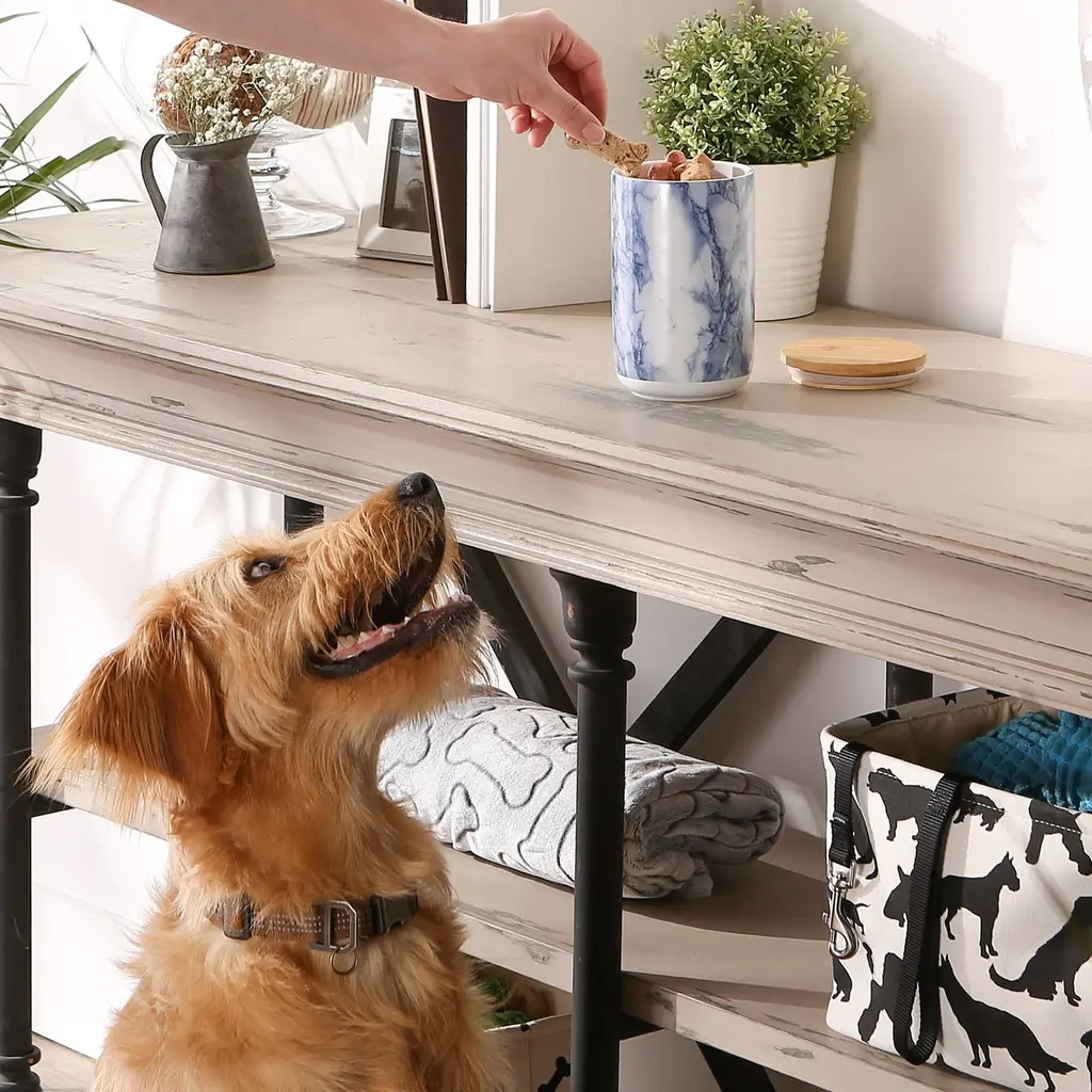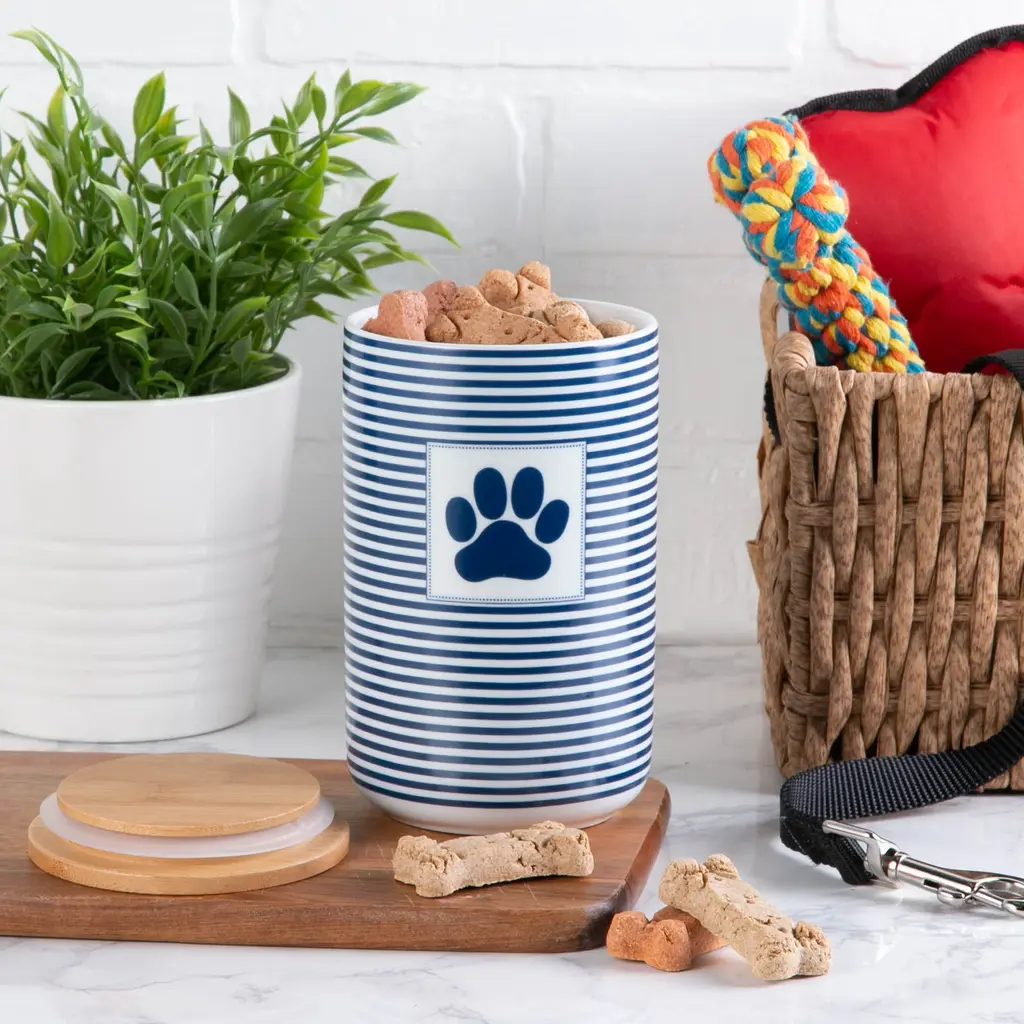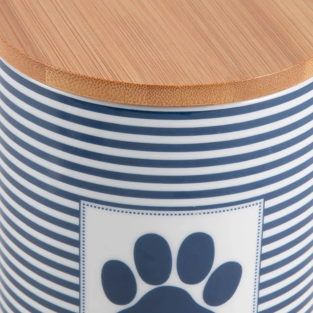 Treat canister measures 4"(D) x6.5" (H), perfect for storing pet food, treats for dogs and cats or even your cookies, coffee, tea, cocoa, pasta, spice and herbs Ceramic Canister is Dishwasher Safe; Hand wash Bamboo Lids and Towel Dry Bamboo lid allow the food/treat to breath through yet silicone rim airtight the jar to keep out moisture, humidity and pests Lattice with paw print goes well with any home décor. You can find it match with Bone dry pet bed and pet bowl. Get the whole collection now Bone Dry offers various pet products including pet bed, pet towels, pet mats, pet bowls, blankets, and toy storage. Search Bone Dry for more pet products