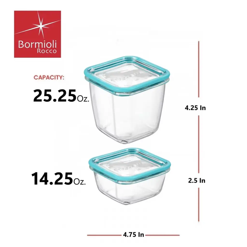 Bormioli Rocco Frigoverre Future Glass Kitchen Storage Containers, Set Of 4 - 25.25 Oz & 14.25 Oz Food Jars With Lids - Airtight Glass Containers
