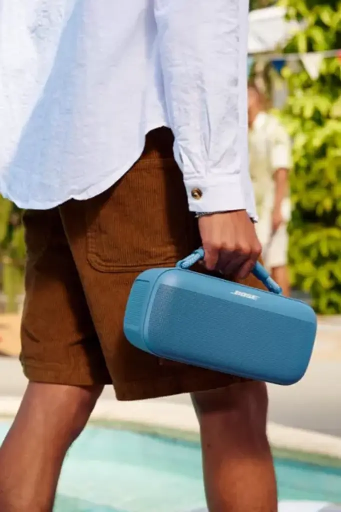 The Bose SoundLink Max is a rugged portable Bluetooth speaker delivering powerful stereo sound and deep bass. With up to 20 hours of battery life it's designed for all day listening. Its IP67 rating ensures water and dust resistance making it suitable for outdoor use. Features include Bluetooth 5.3 with aptX Adaptive USB C charging with power out 3.5mm aux input and a detachable rope handle. The Bose Music app offers EQ adjustments and SimpleSync pairing with other Bose speakers. **Features** \- Big Stereo Sound with Deep Bass \- Up to 20 Hours of Battery Life \- Water and Dust proof (IP67) \- Multi point Bluetooth Connection \- AUX Input **Content + Care** \- SoundLink Max Bluetooth Boombox Speaker \- USB C® (C to C) Cable \- USB C® Power Supply \- Safety Sheet **Size** \- Dimensions (W x H x D): 10.42" x 4.73" x 4.13" \- Weight: 4.70 lbs. \- Water Resistant: IP67 \- Battery Life: 20 hours \- Battery Charge Time: 5 hours \- Charging Interface(s): USB C In/Out \- Bluetooth Version: 5.3