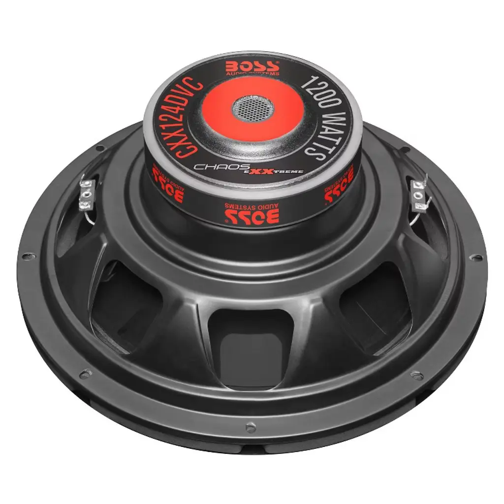 Boss Chaos Exxtreme Cxx124dvc 12-inch 1200w 4 Ohm Subwoofer With Qsbass12-vented Vented Subwoofer Enclosure Box, Ar1500m Amplifier & Aks8 Wiring Kit