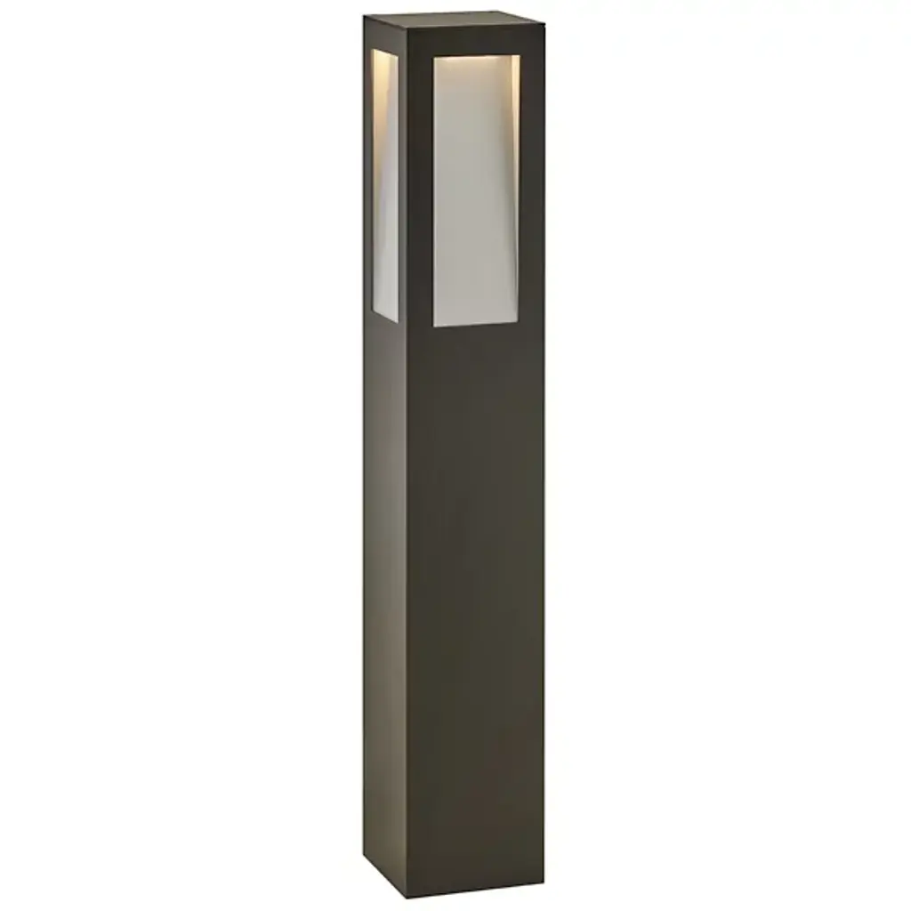 Geometric solids, in unity with rectilinear columns, form single-sided and double-sided LED illuminated bollards that compose the dramatic impact of crisp simplicity.