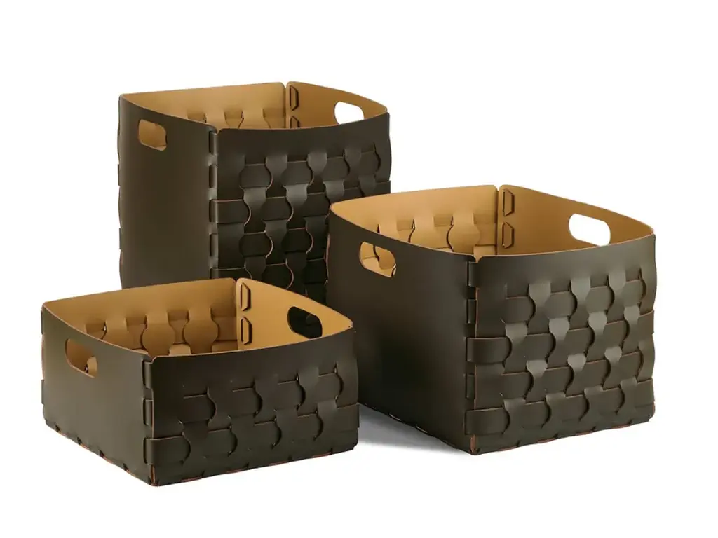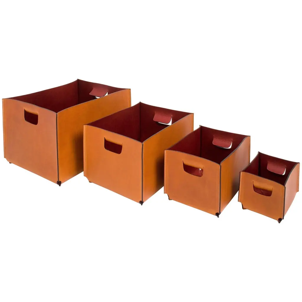 Box is a cowhide storage basket, available in four sizes. Designed as the ideal accessory for the Infinity bookcase and Fly tables and consoles, Box can also be used by itself as a magazine holder or placed alongside a sofa or armchair as a container for all kinds of objects. It is an attractive and functional accessory made of warm, natural cowhide – a preferred Flexform material. Two simple openings cut out of the sides of the Box act as handles to easily pick it up and move it.TECHNICAL SPECIFICATIONS Frame in hide leather: russian red (5008), white (5007), olive (5006), black (5005), dark brown (5004), dark brown extra (5013), grey (5003), sand (5001), tobacco (5015). MATERIALS Frame: hide leather - suede