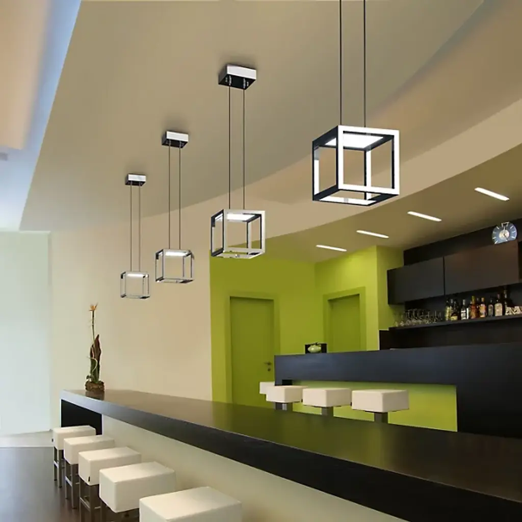 The Blackjack Lighting Boxer LED Pendant takes advantage of the perfect symmetry of the cube, playing with spatial minimalism and geometry with a square metal frame. Discreetly hidden in the top of each open frame is an ultra-thin LED panel, shining uniform light through the shade. The matching square canopy gives a nice continuity to the design, making the Boxer as visually pleasing as it is functional.